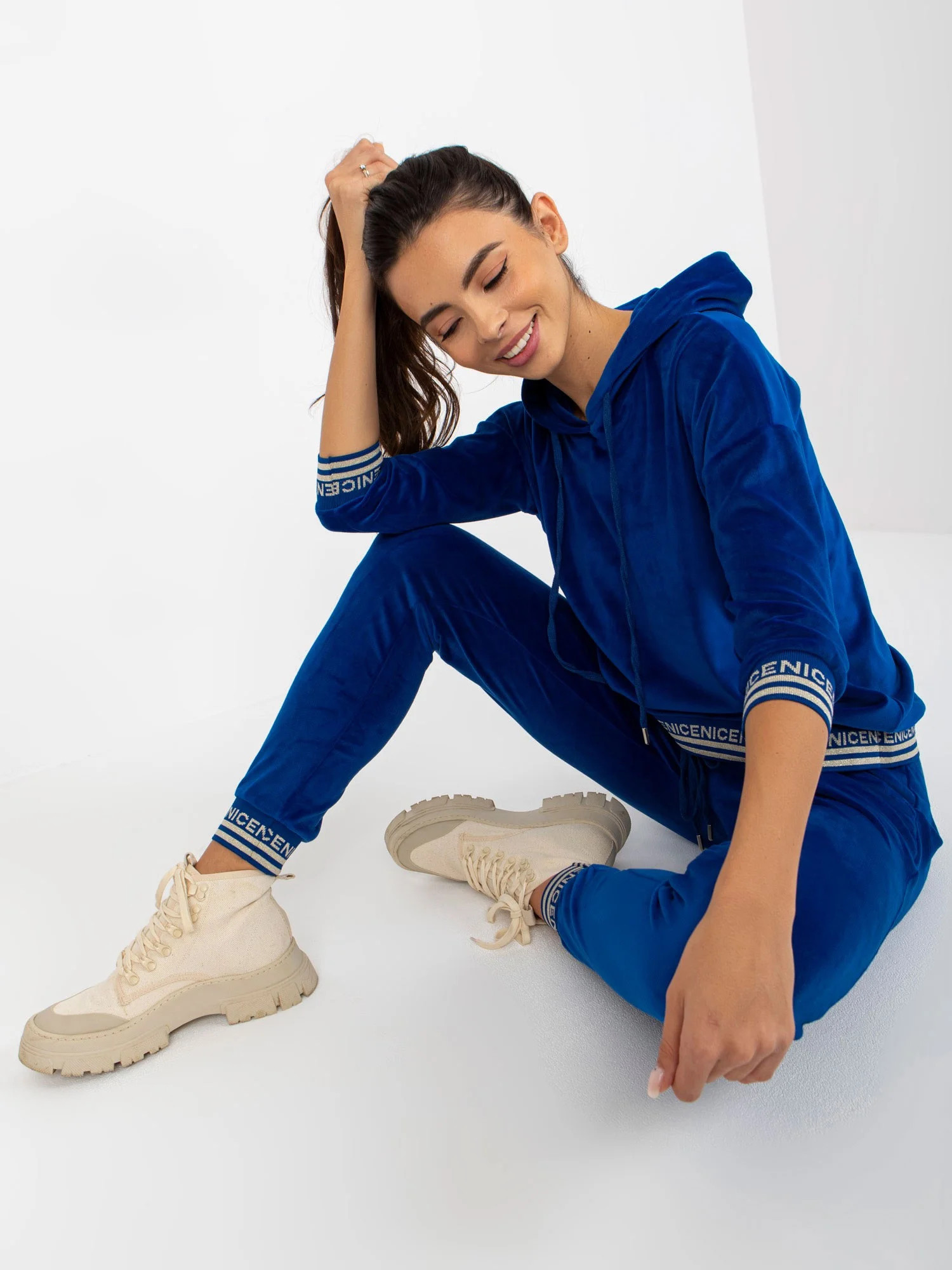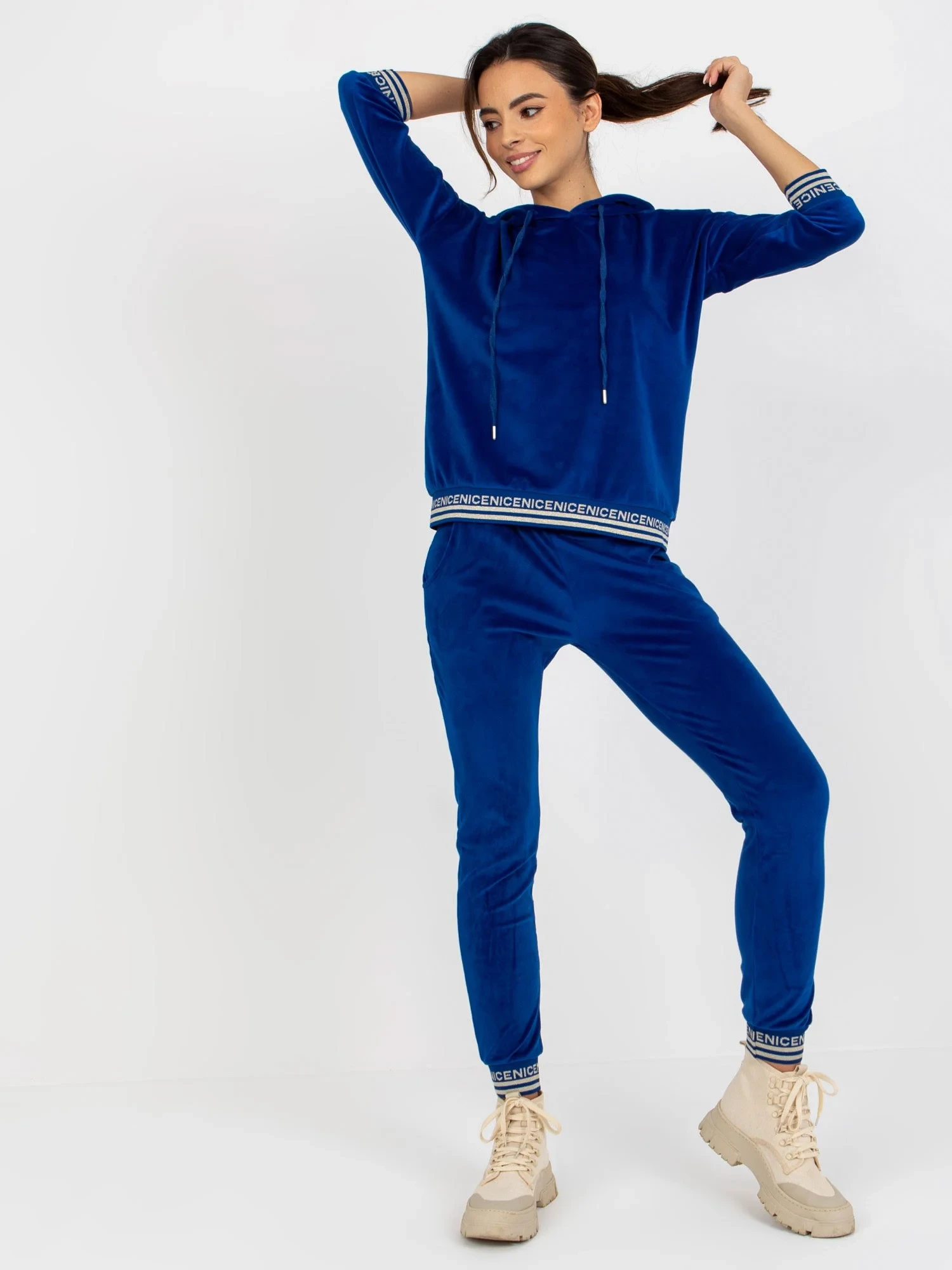 Modelka má na sobě velikost S/M. Rozměry modelky: výška 175 cm, poprsí 84 cm, pas 61 cm, boky 91 cm.