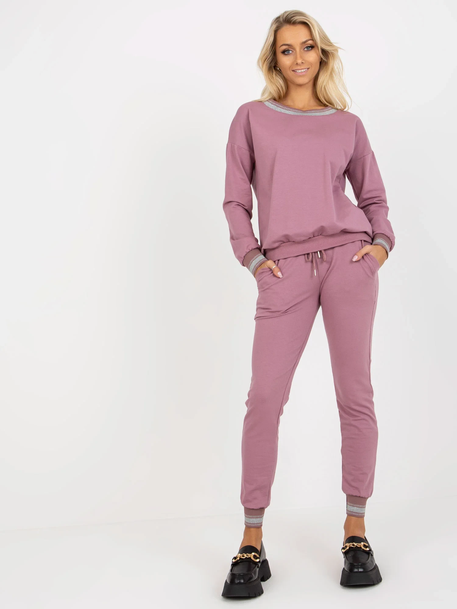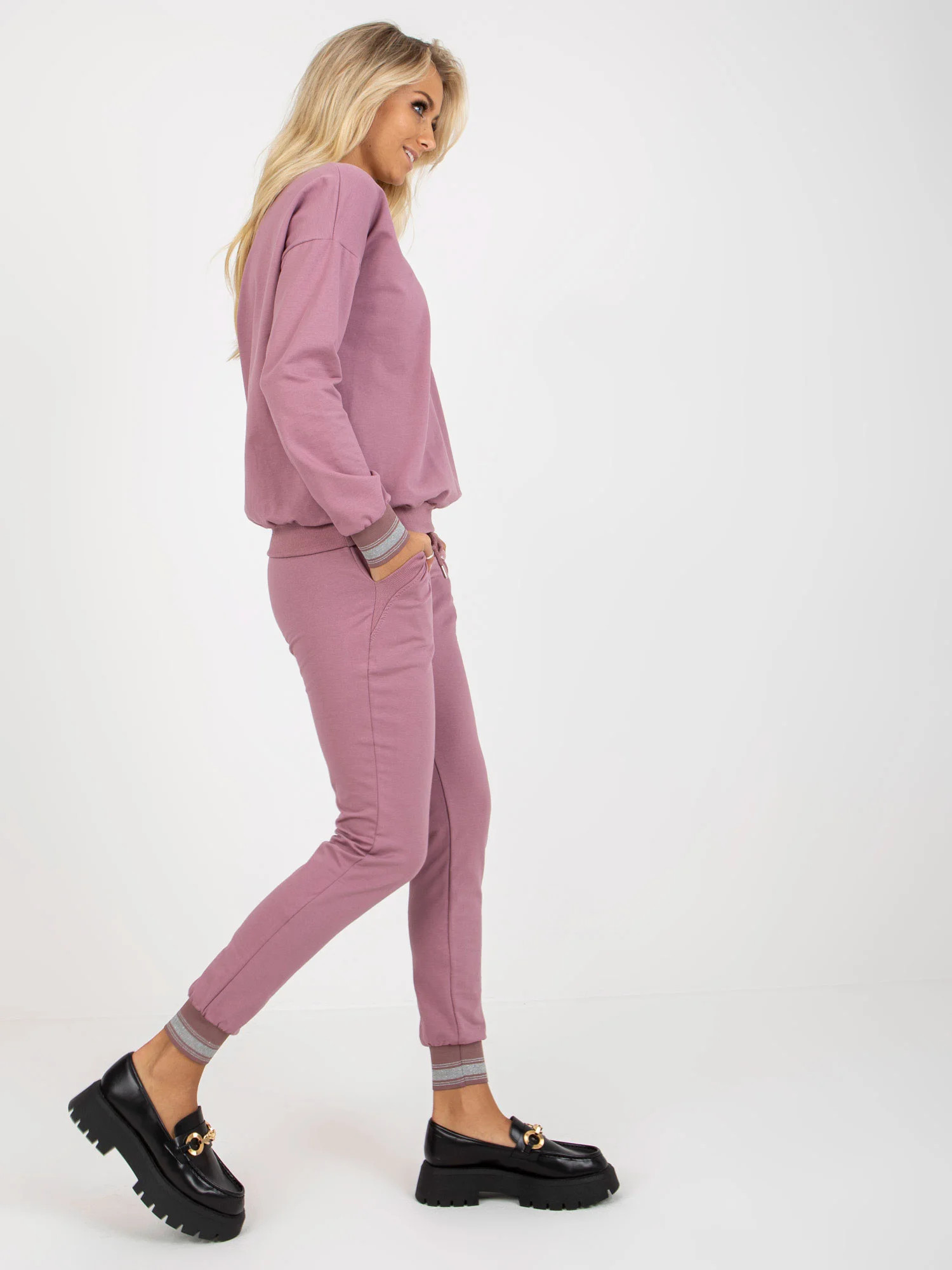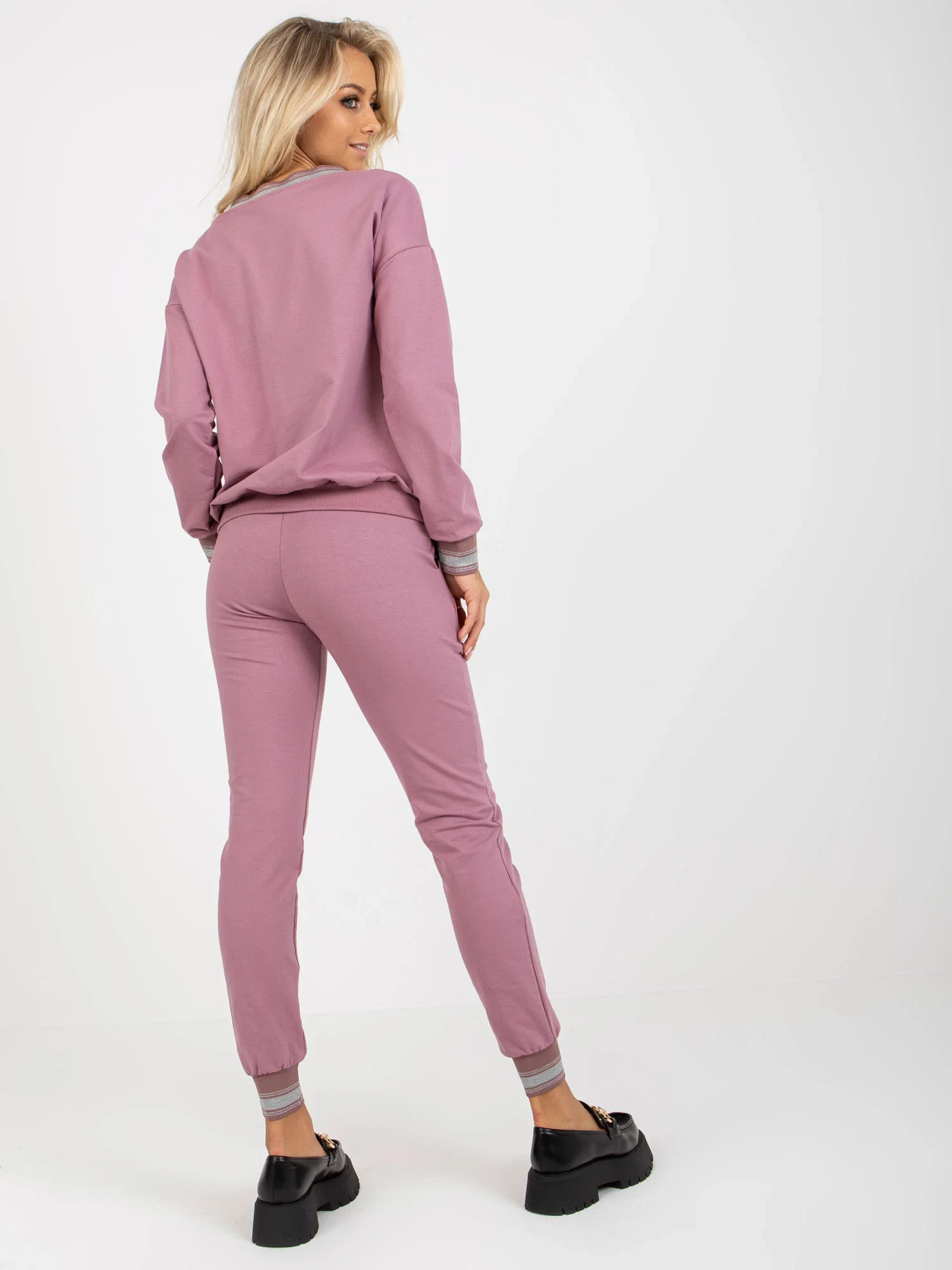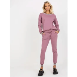 Špinavě růžová tepláková souprava s mikinou bez kapuce .