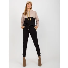 Béžovo-černá dámská tepláková souprava s kapucí .