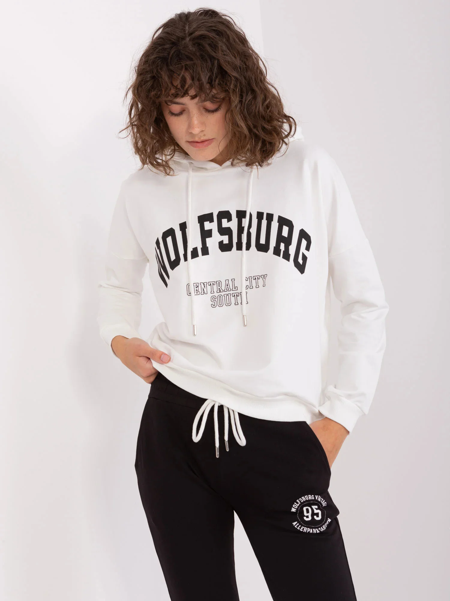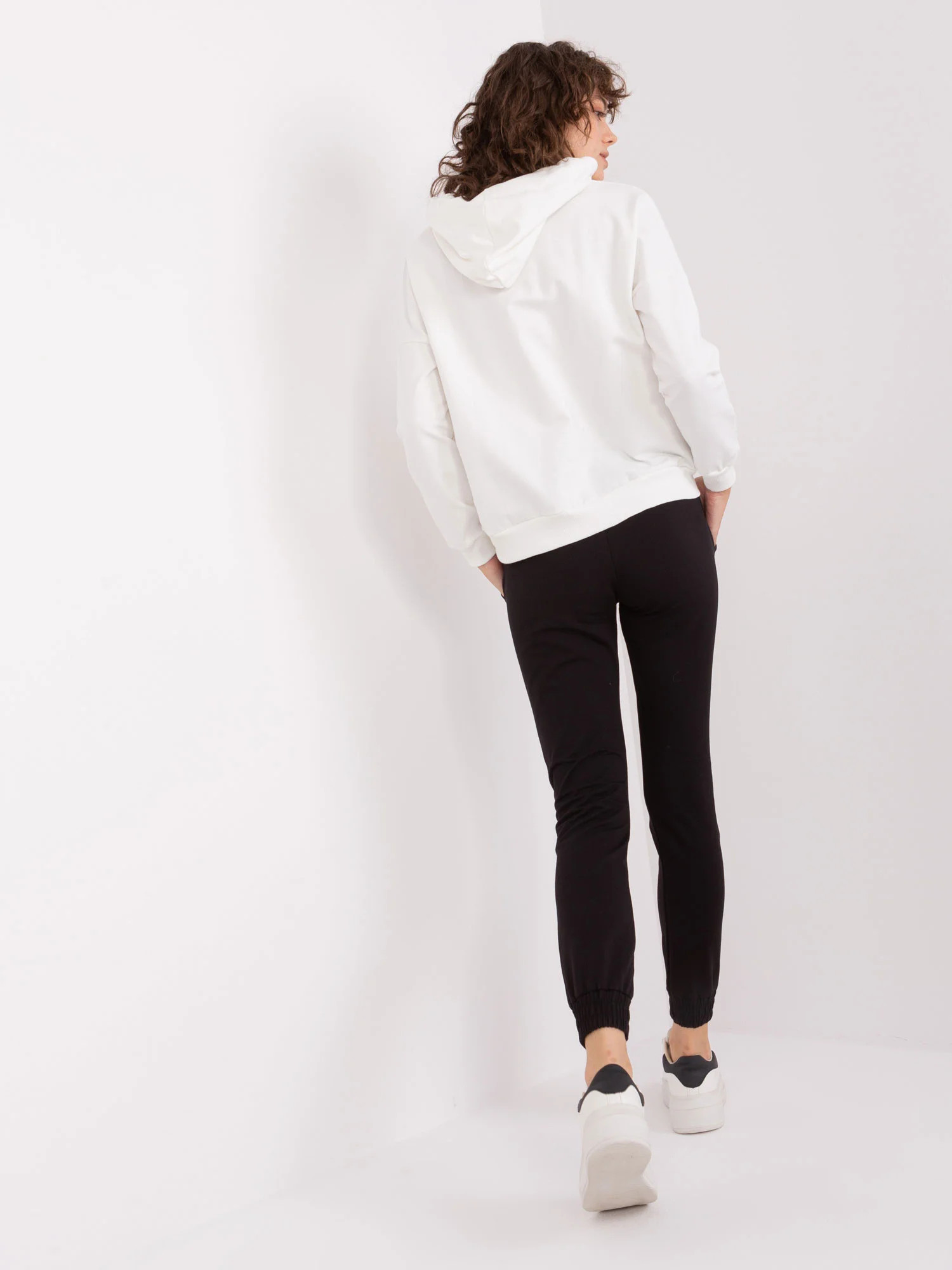 Ecru-černá dámská tepláková souprava s mikinou .