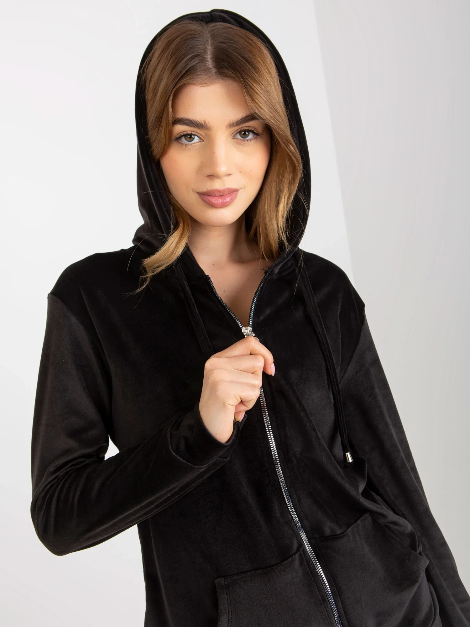 Modelka má na sobě velikost S/M. Rozměry modelky: výška 173 cm, prsa 78 cm, pas 61 cm, boky 90 cm.