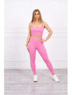 Prezentujemy Państwu komplet bluzki i leginsów. Bluzka na ramiączka. Bluzka oraz leginsy z prążkowanego materiału. Komplet wykonany jest z wysokiej jakości materiału. Rozmiar jest uniwersalny i będzie odpowiedni dla Pań w rozmiarze S lub M.