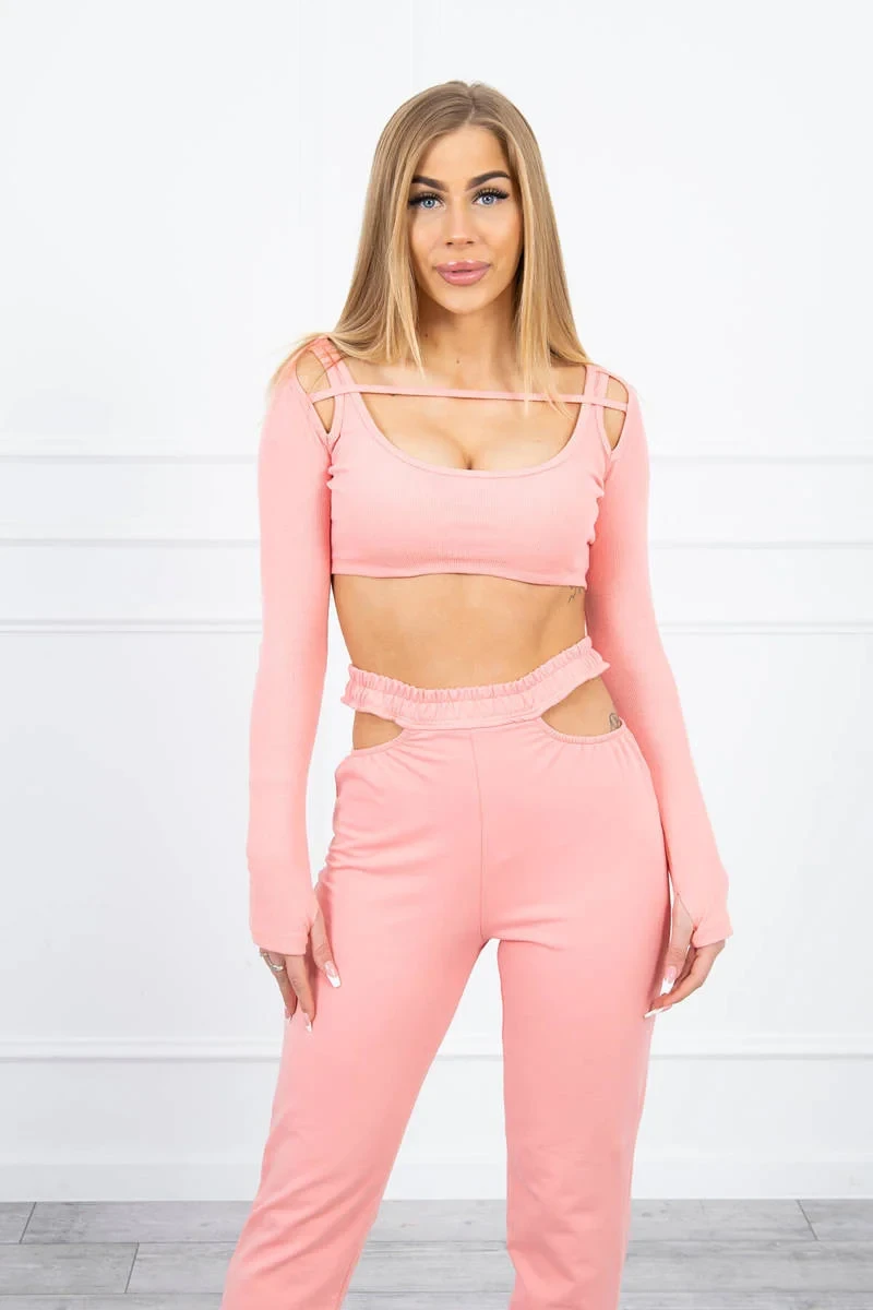 Představujeme vám sadu halenky a kalhot. Halenka z žebrované tkaniny s dlouhými rukávy. Obyčejné kalhoty bez kapes. Sada je vyrobena z vysoce kvalitního materiálu. Velikost je univerzální a vyhovuje dámám velikosti S, M nebo L.