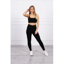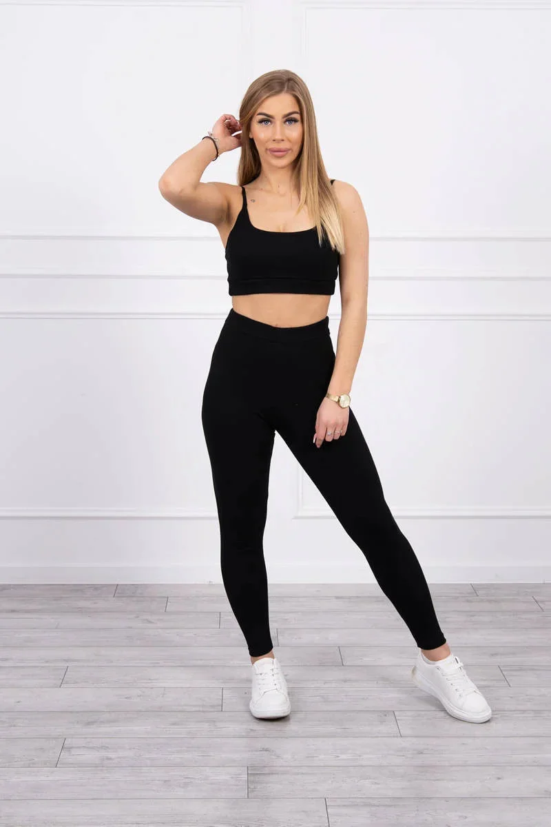 Prezentujemy Państwu komplet bluzki i leginsów. Bluzka na ramiączka. Bluzka oraz leginsy z prążkowanego materiału. Komplet wykonany jest z wysokiej jakości materiału. Rozmiar jest uniwersalny i będzie odpowiedni dla Pań w rozmiarze S lub M.