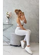Prezentujemy Państwu komplet bluzki i leginsów. Bluzka na ramiączka. Bluzka oraz leginsy z prążkowanego materiału. Komplet wykonany jest z wysokiej jakości materiału. Rozmiar jest uniwersalny i będzie odpowiedni dla Pań w rozmiarze S lub M.