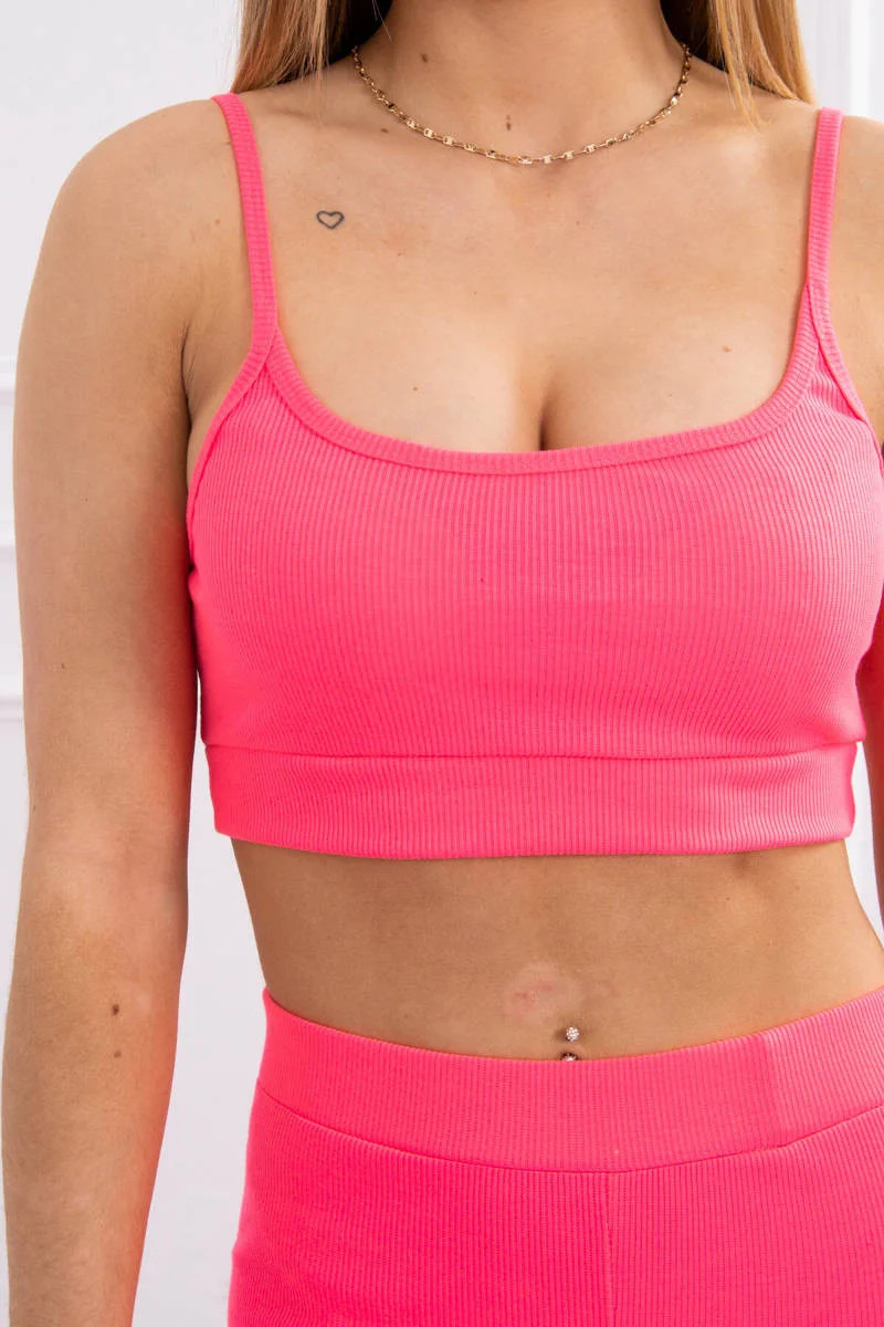 Souprava s kalhotami s vysokým pasem růžové neonové barvy