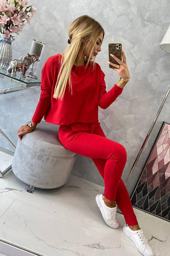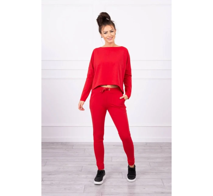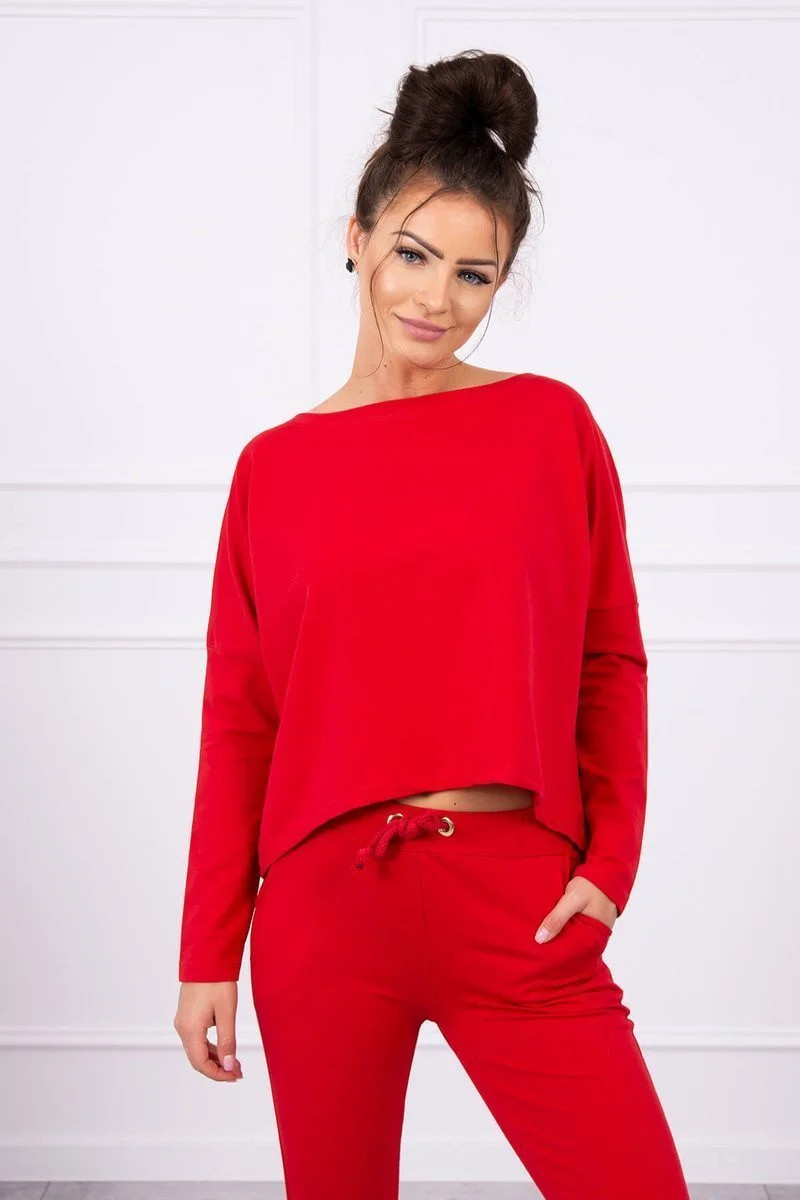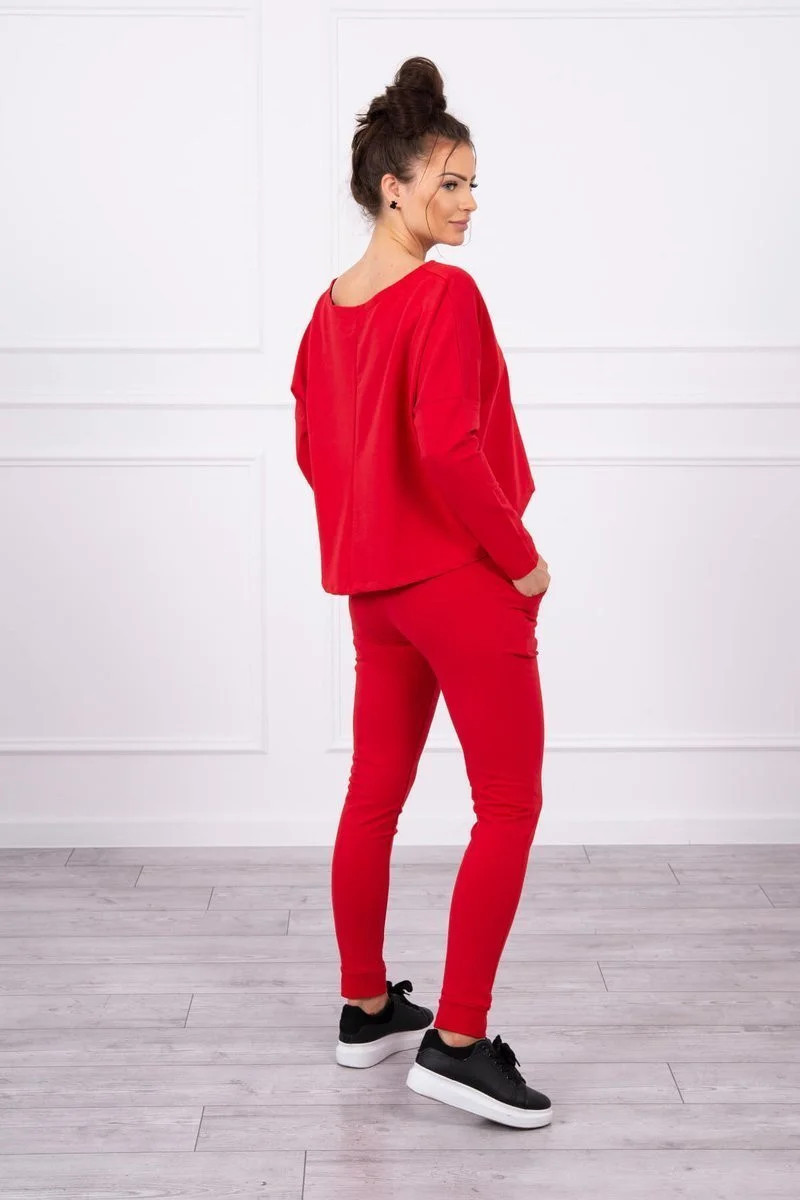 Souprava s oversize halenkou červené barvy