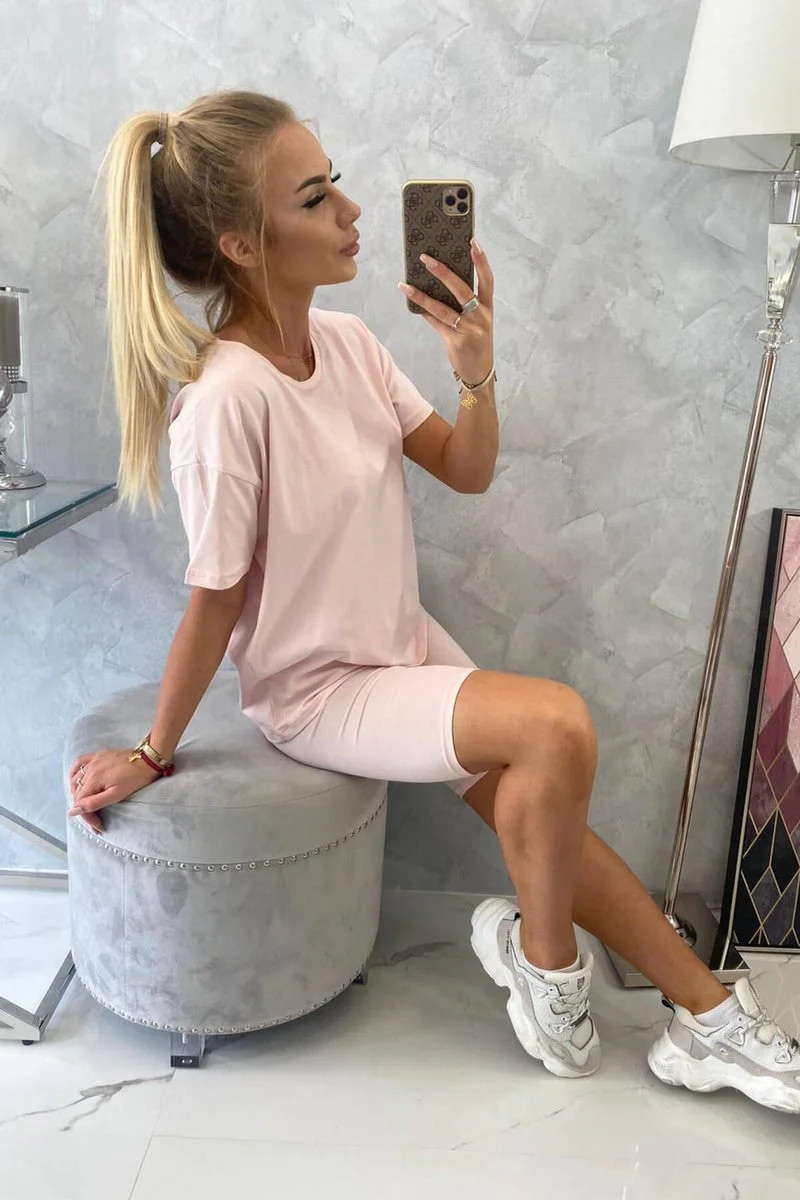 Souprava top+legíny pudrově růžová