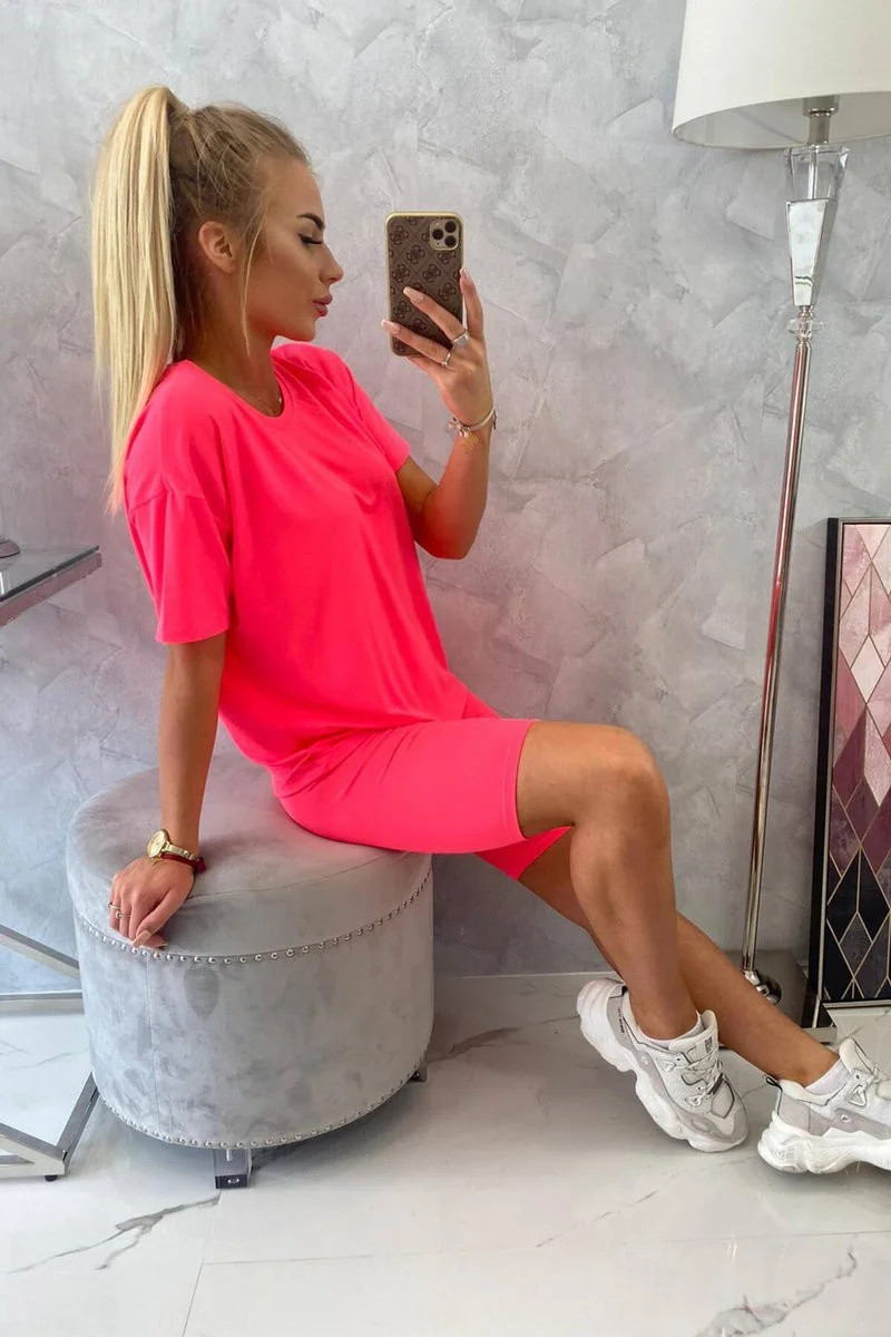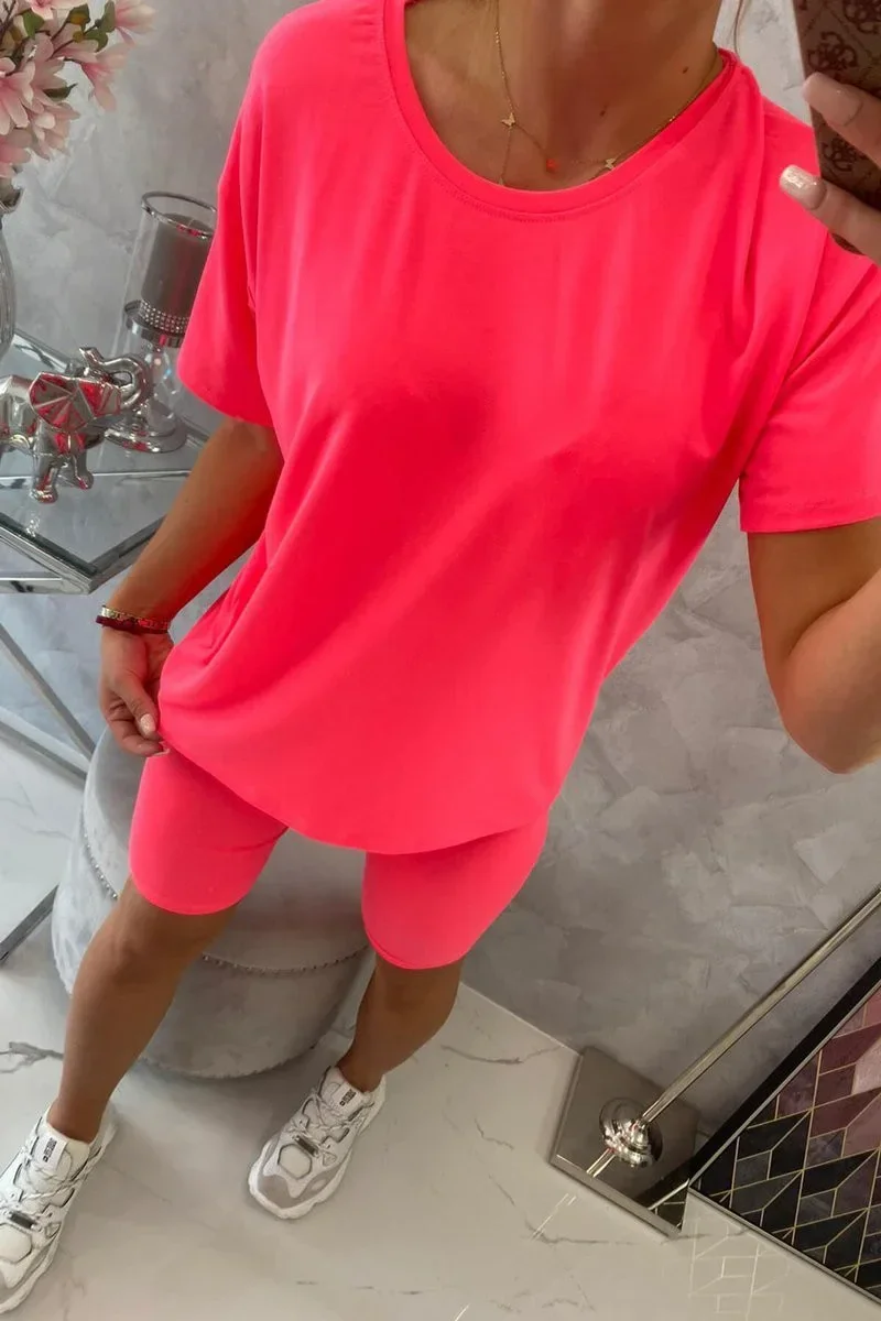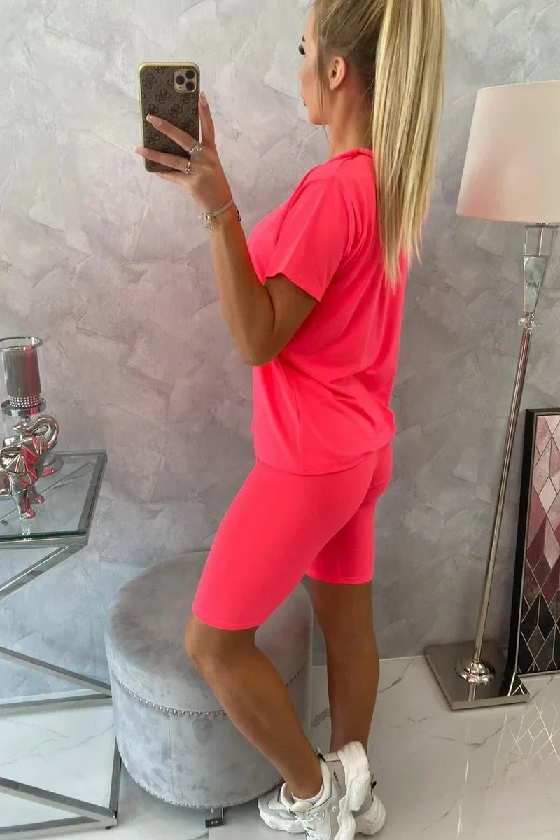 Souprava top+legíny růžová neonová
