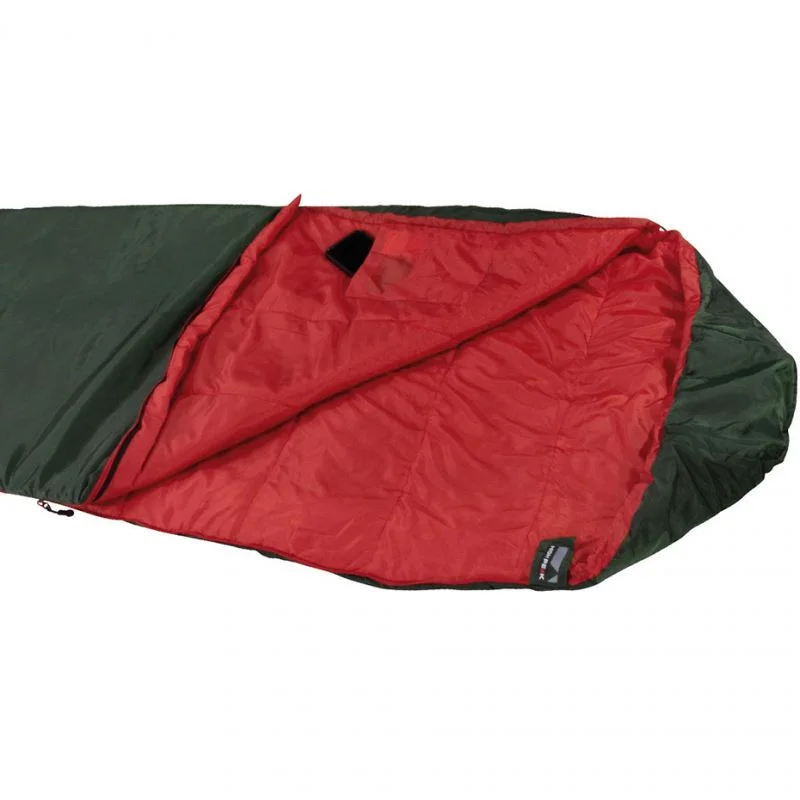 - Spací pytel typu mumie s pohodlnou kapucí pod hlavou.