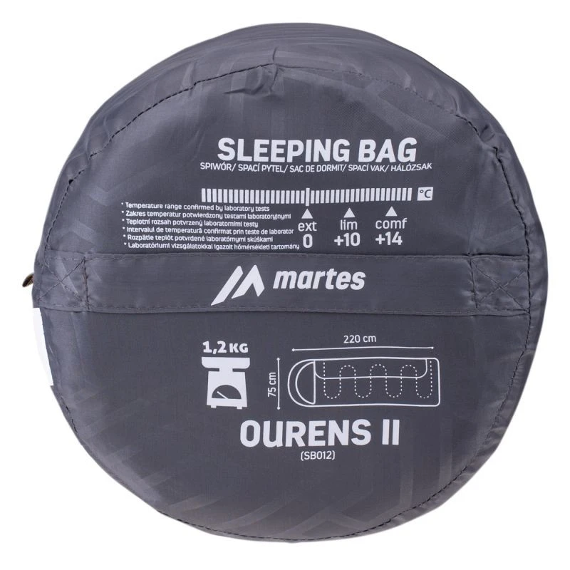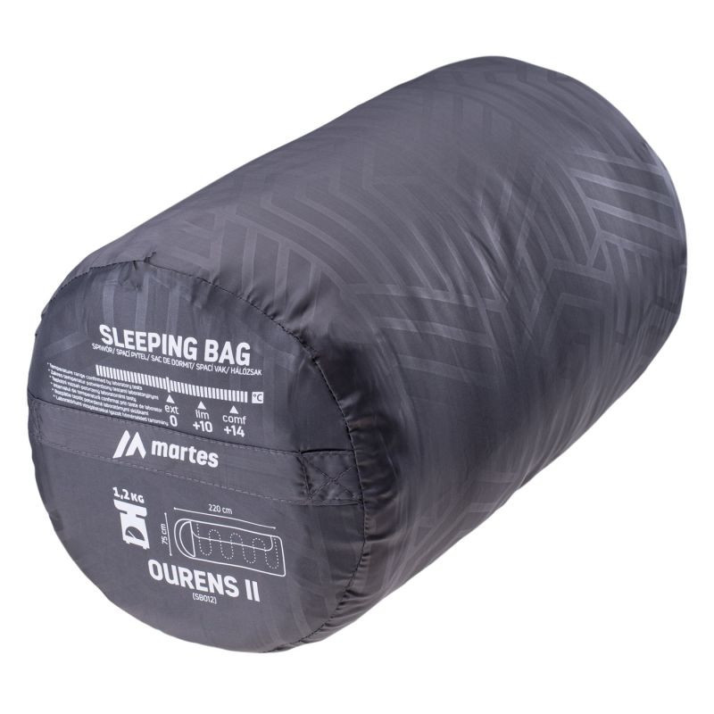 ŚPIWÓR ROZMIAR: 220 x 75 cm PO SPAKOWANIU: 38 x 20 cm WAGA: 1,2 kg ZAKRES TEMPERATUR: KOMFORT: + 14°C LIMIT: + 10°C MINIMUM: 0°C SKŁAD MATERIAŁOWY: MATERIAŁ ZEWNĘTRZNY: 100% POLIESTER PODSZEWKA: 100% POLIESTER WYPEŁNIENIE: 100% POLIESTER, 250 g/m2