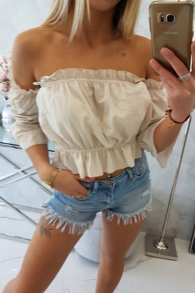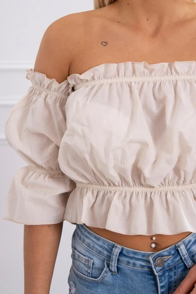 Představujeme vám módní halenku. Halenka s odhalenými rameny, španělský styl. Módní ozdůbky. Pružná guma všitá do pasu a výstřihu. Halenka je vyrobena z vysoce kvalitního materiálu. Velikost je univerzální a vyhovuje dámám, které nosí velikost S, M nebo L.