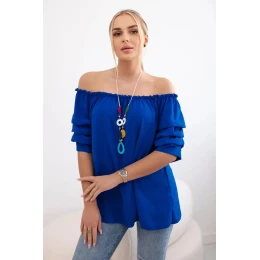 Španělská halenka s ozdobnými rukávy chrpově modrá