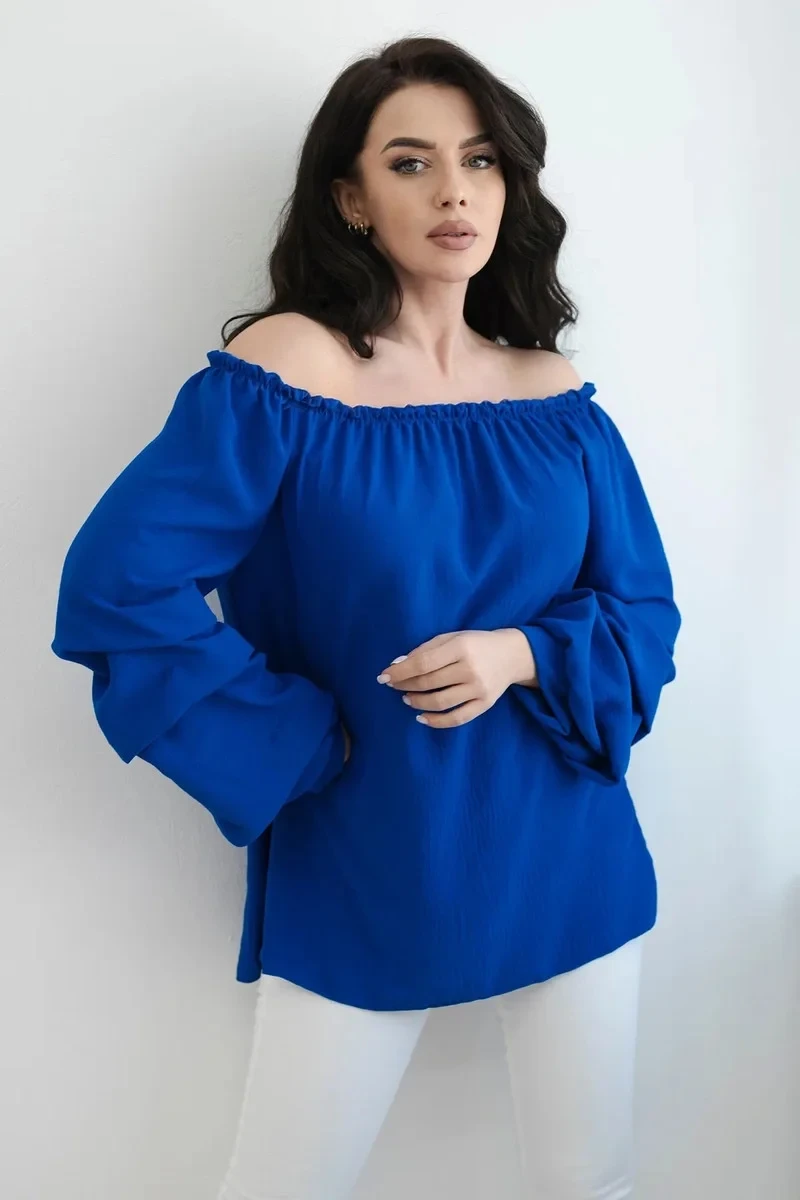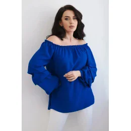 Španělská halenka s ozdobnými rukávy chrpově modrá