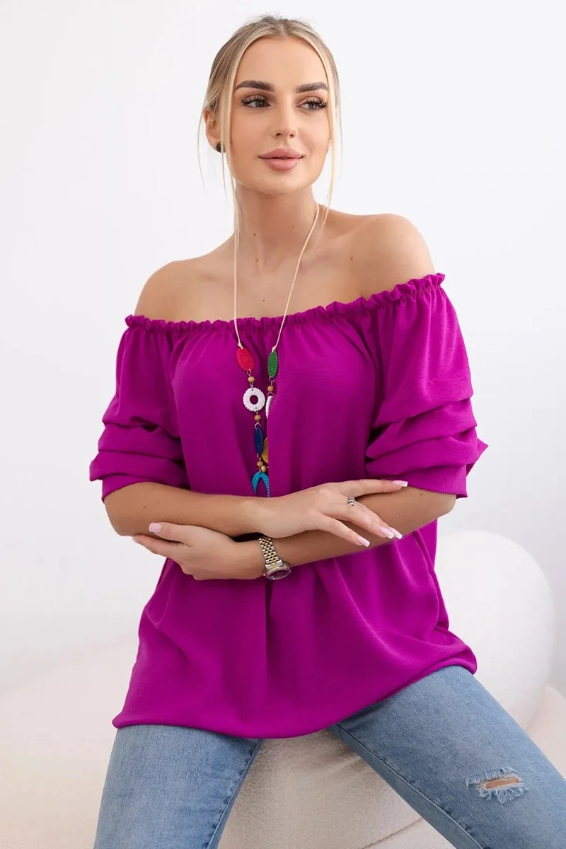 Španělská halenka s ozdobnými rukávy tmavě fialová