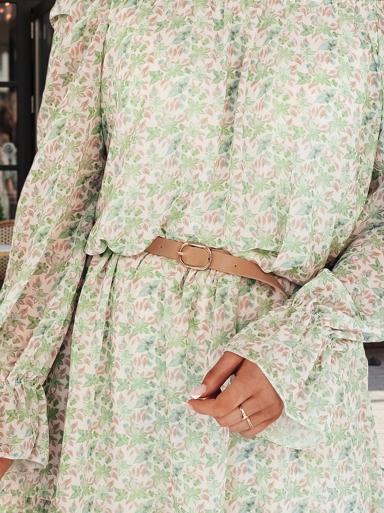 Ciťte se výjimečně ve španělských šatech KERVEN off-the-shoulder, které v sobě spojují dívčí půvab s nádechem elegance. Jemný květinový vzor jim dodává decentnost, zatímco mini délka zvýrazní vaše nohy. Díky volánovému lemování je tento model ideální pro jarní a letní dny. Udělejte si z něj svůj oblíbený!