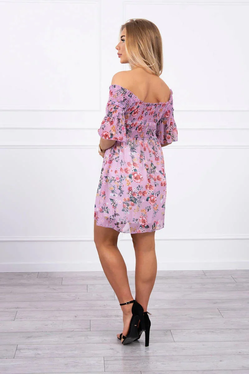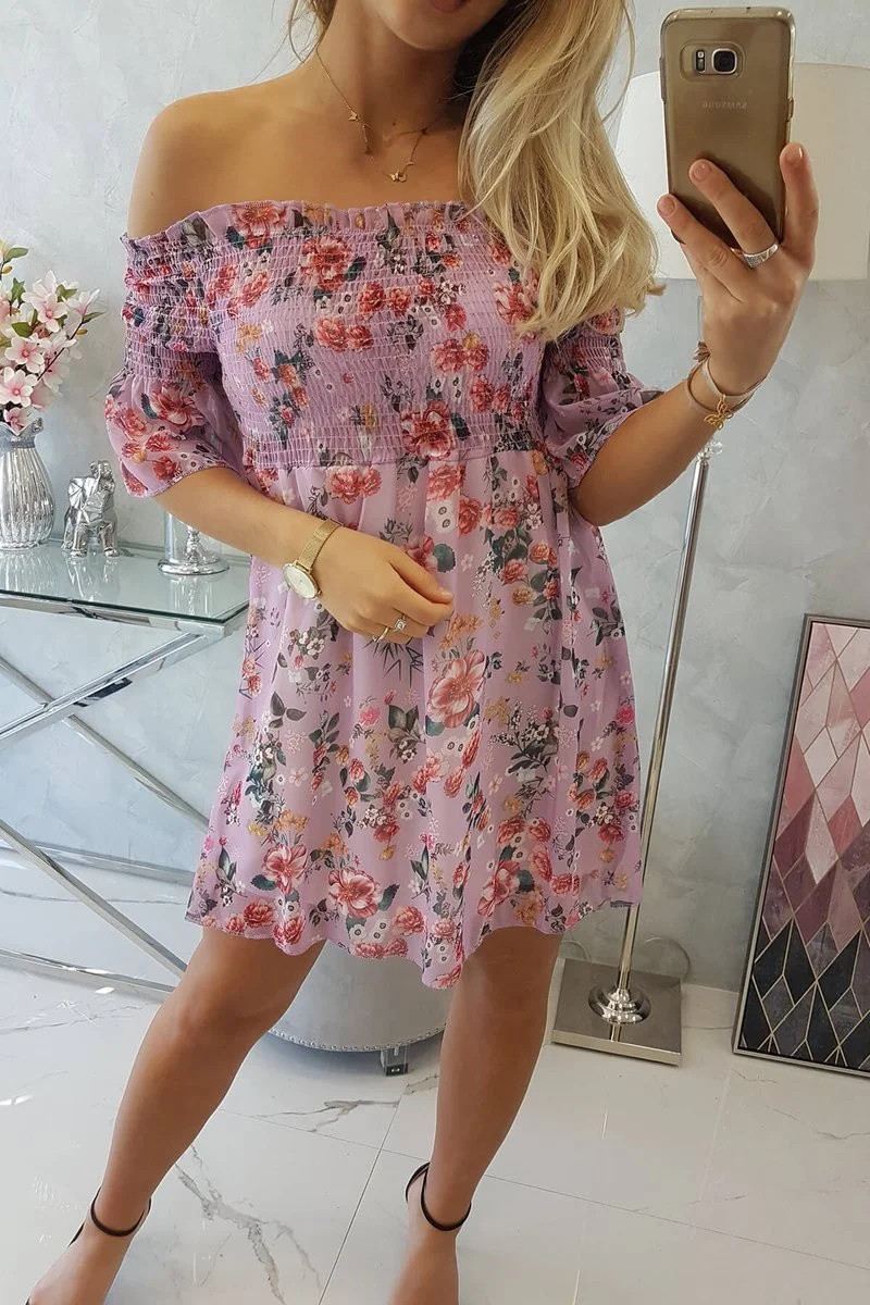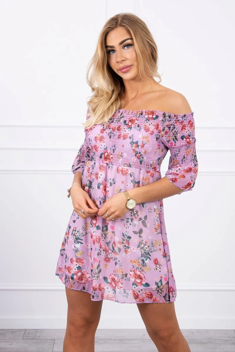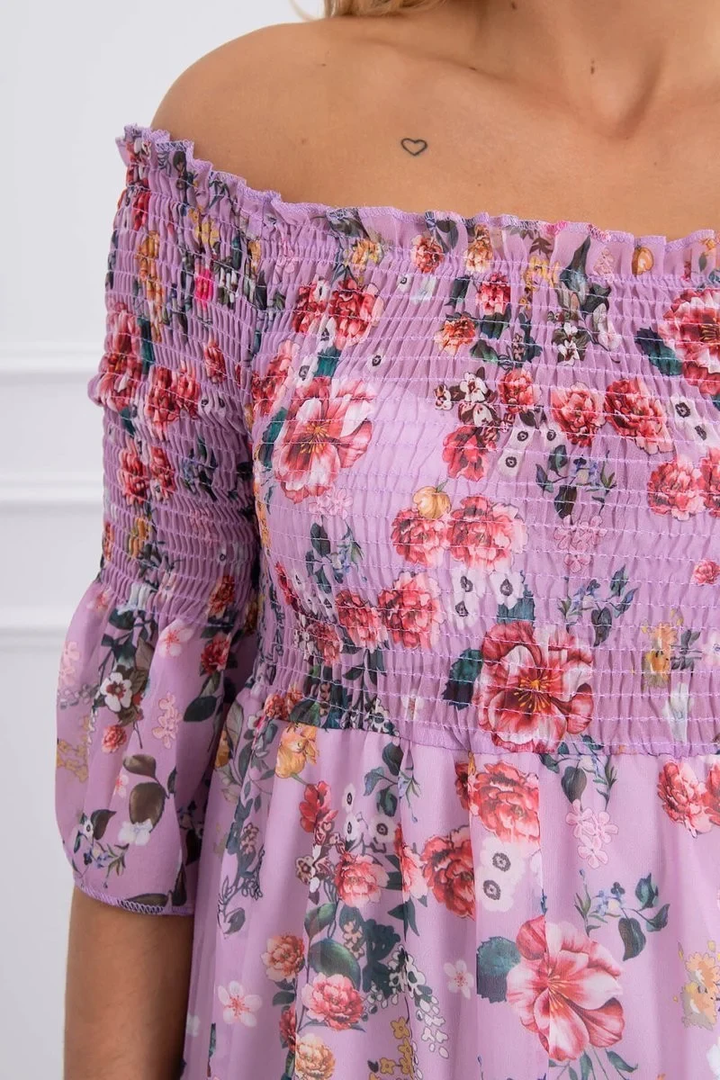 Španělské šaty s květinovým motivem fialové