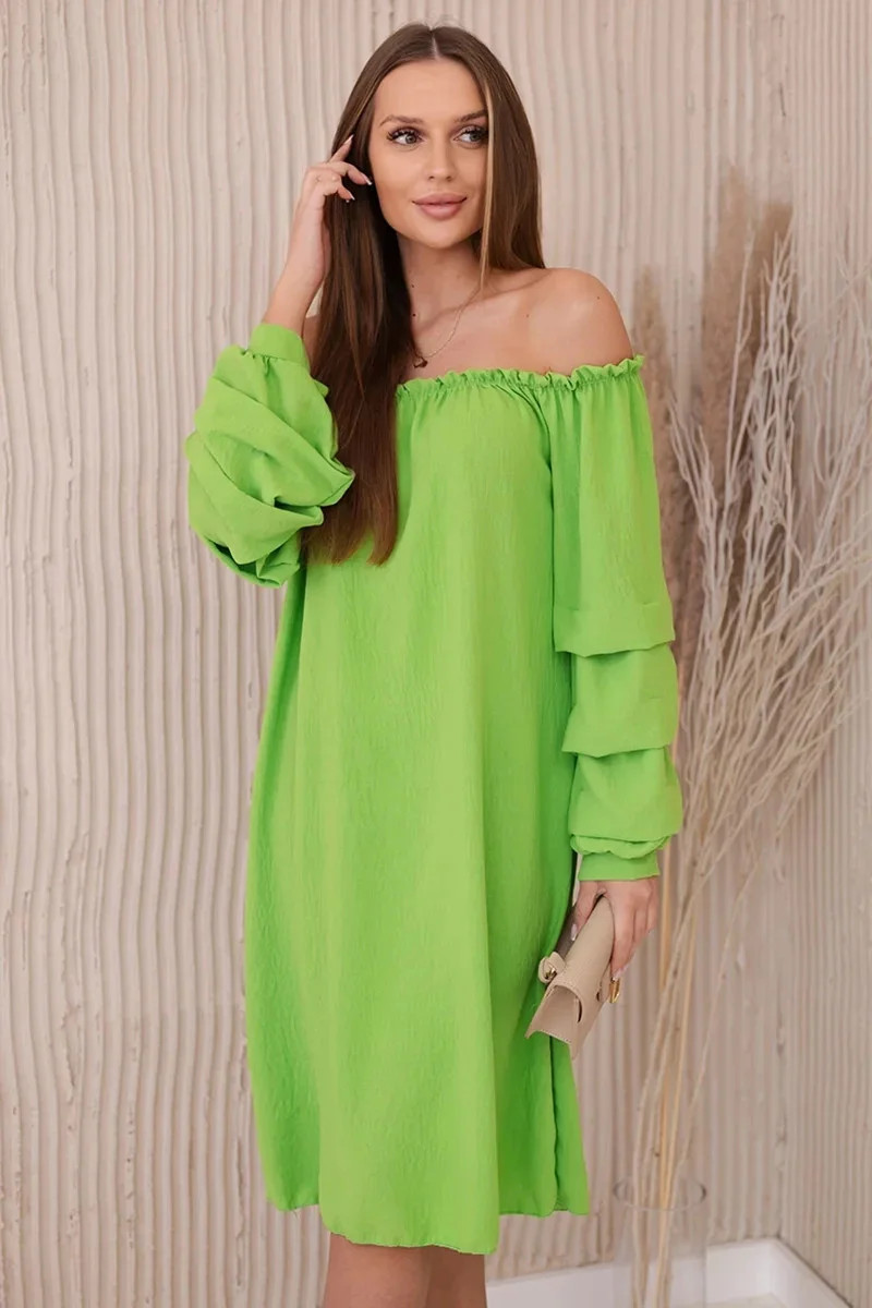Španělské šaty s ozdobnými rukávy jasně zelená