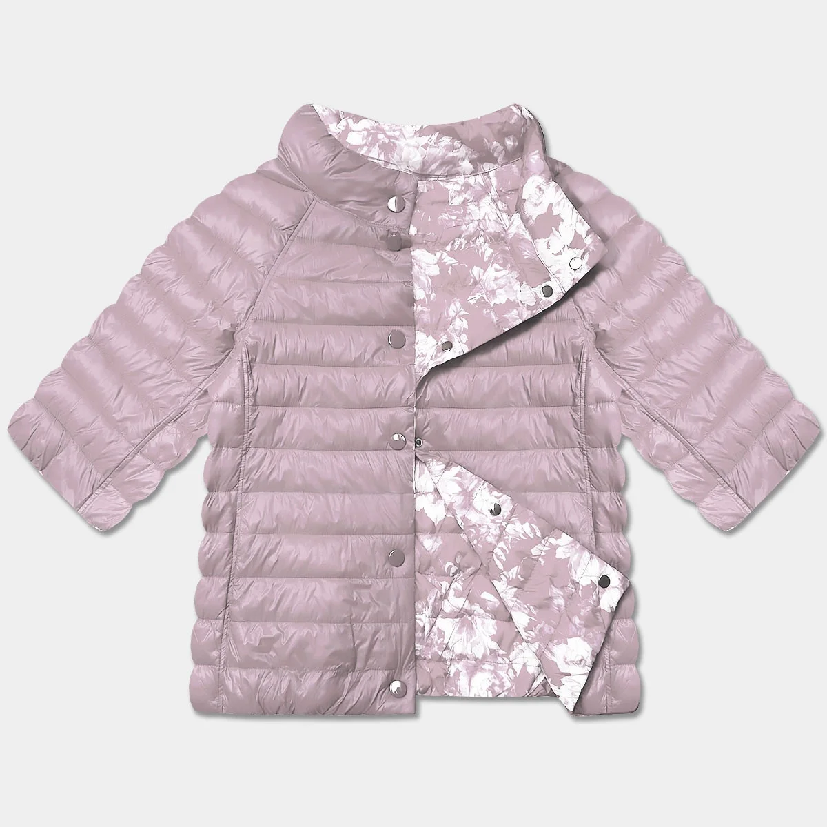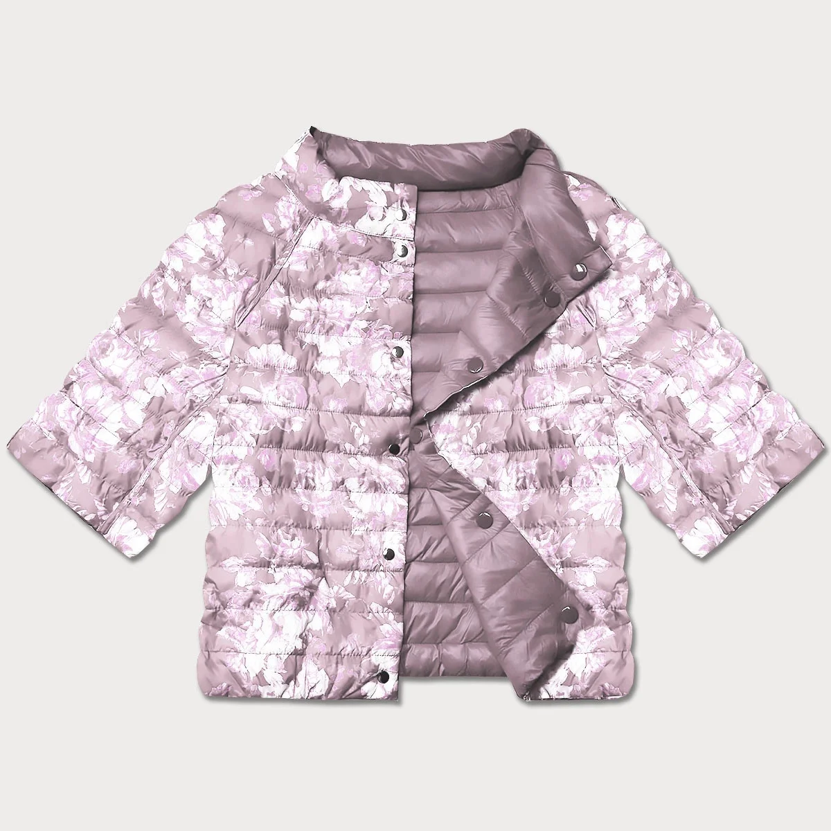 Špinavě růžová/květovaná oboustranná dámská plus size bunda se 3/4 rukávy Minority (M23-7010-57)