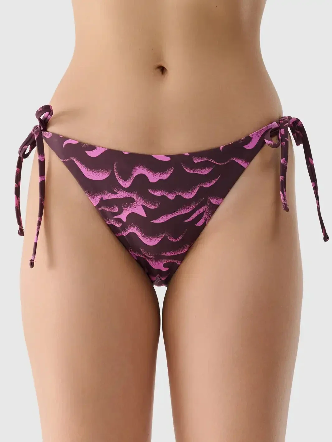 Na bocích jsou nastavitelné šňůrky, které umožňují individuální přizpůsobení a dodávají plavkám hravý prvek.