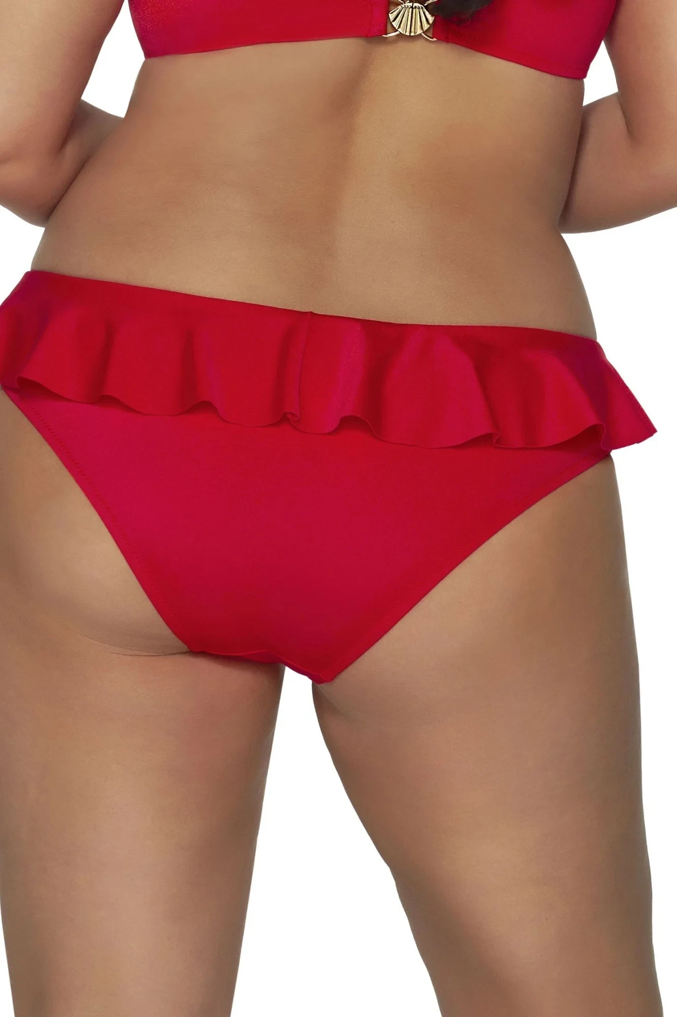 Spodní díl plavek 181/11 Barbados AVA - červená barva - typ brazilky - lem zdobený volánky - z dvojitého hladkého úpletuMateriálové složení: 80% polyamid + 20% elastan