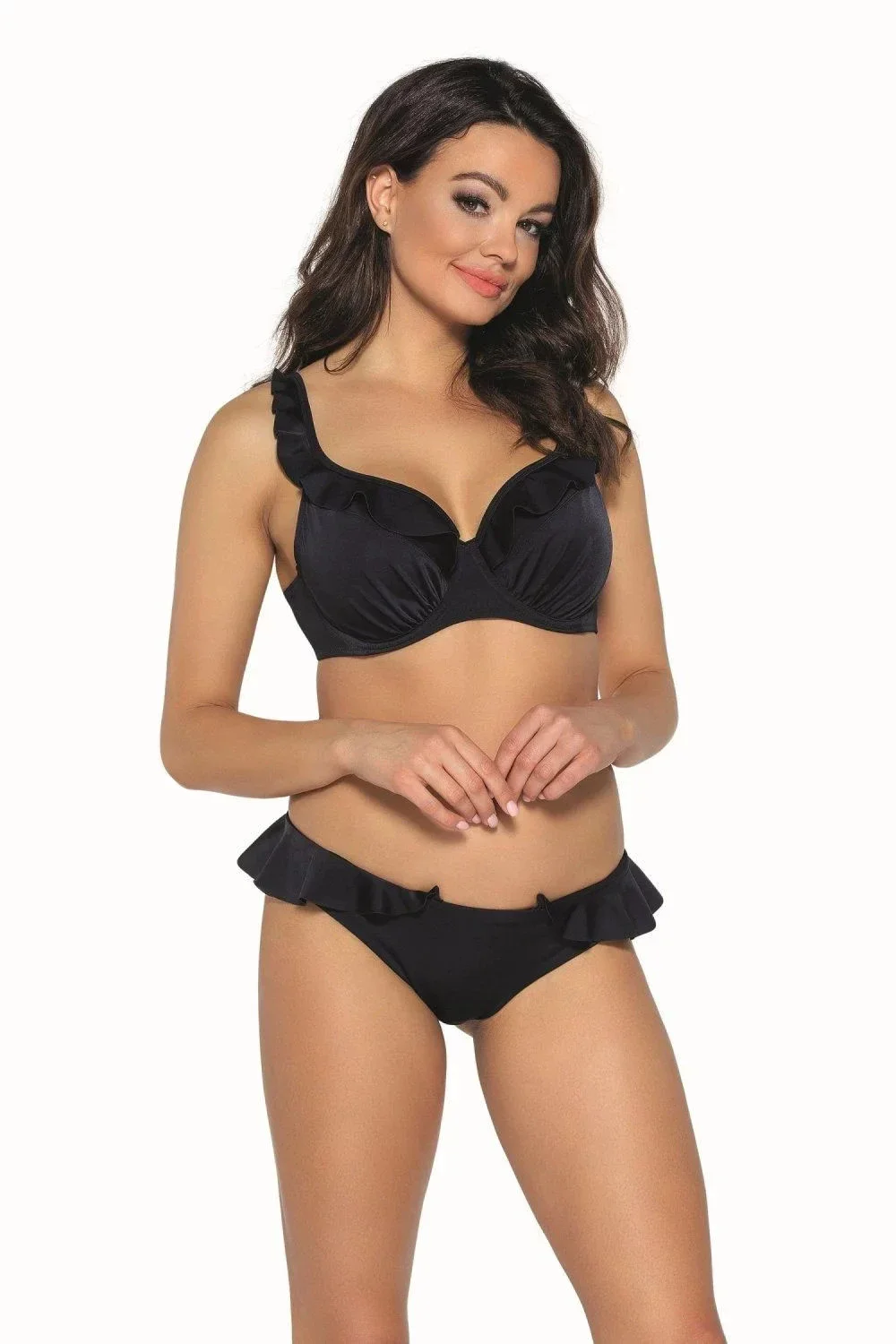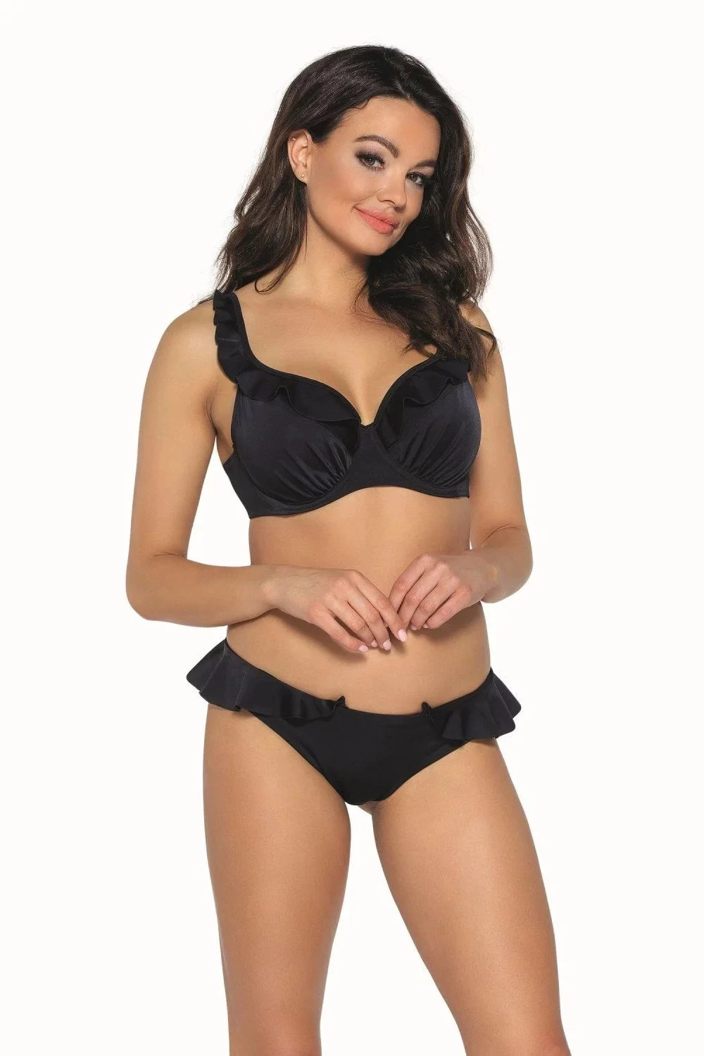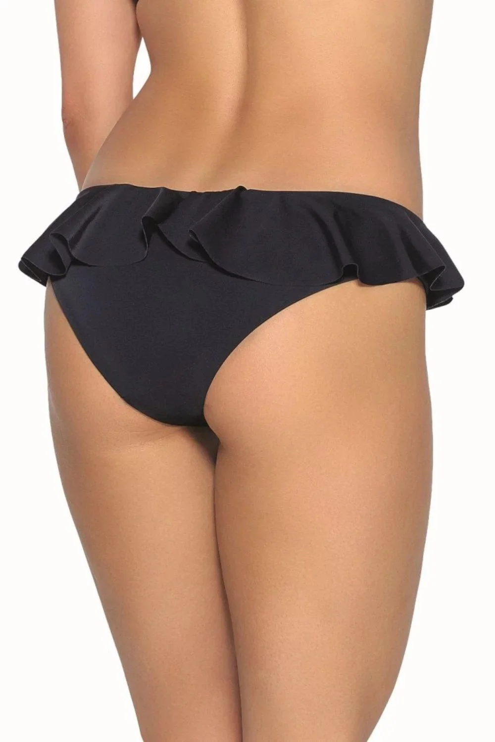 Spodní díl plavek 13/11 black AVA - černá barva - z velmi kvalitního mikrovlákna - typ brazilky - zdobené volánky v horní části