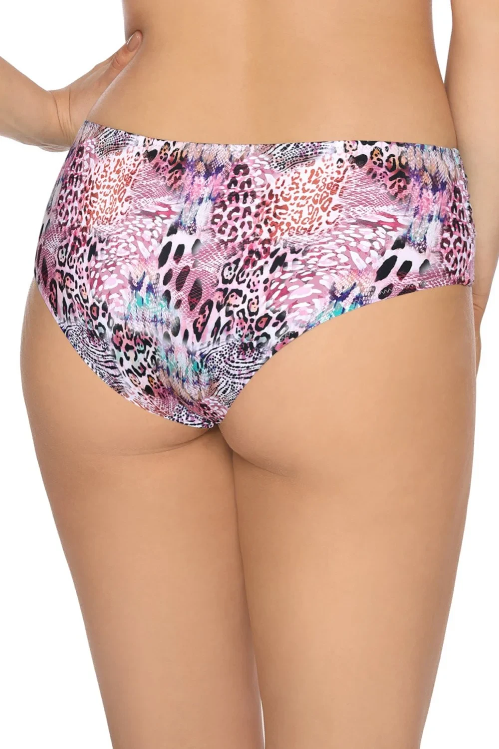 Spodní díl plavek 145/3/B AVA - růžová barva - mikrovlákno ze zvířecími motivy - typ brazilkyMateriálové složení: 80% polyamid + 20% elastan