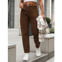 Spodnie damskie z mom fit z paskiem brązowe model 22038530 - FashionStreet