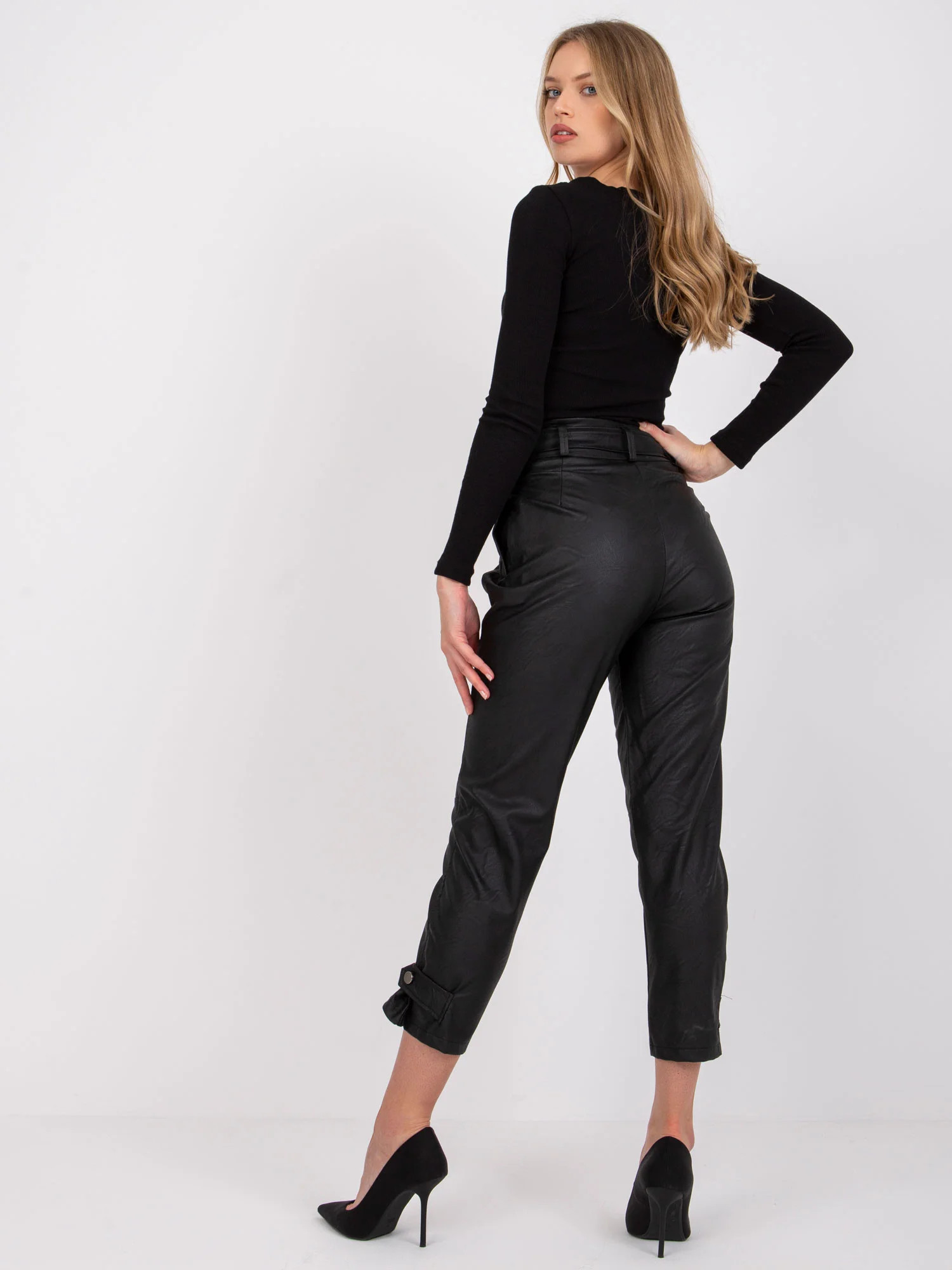 Wymiary spodni w rozmiarze S mierzone na płasko: szerokość w pasie - 33 cm, długość spodni - 92 cm, wysokość stanu - 31 cm.
