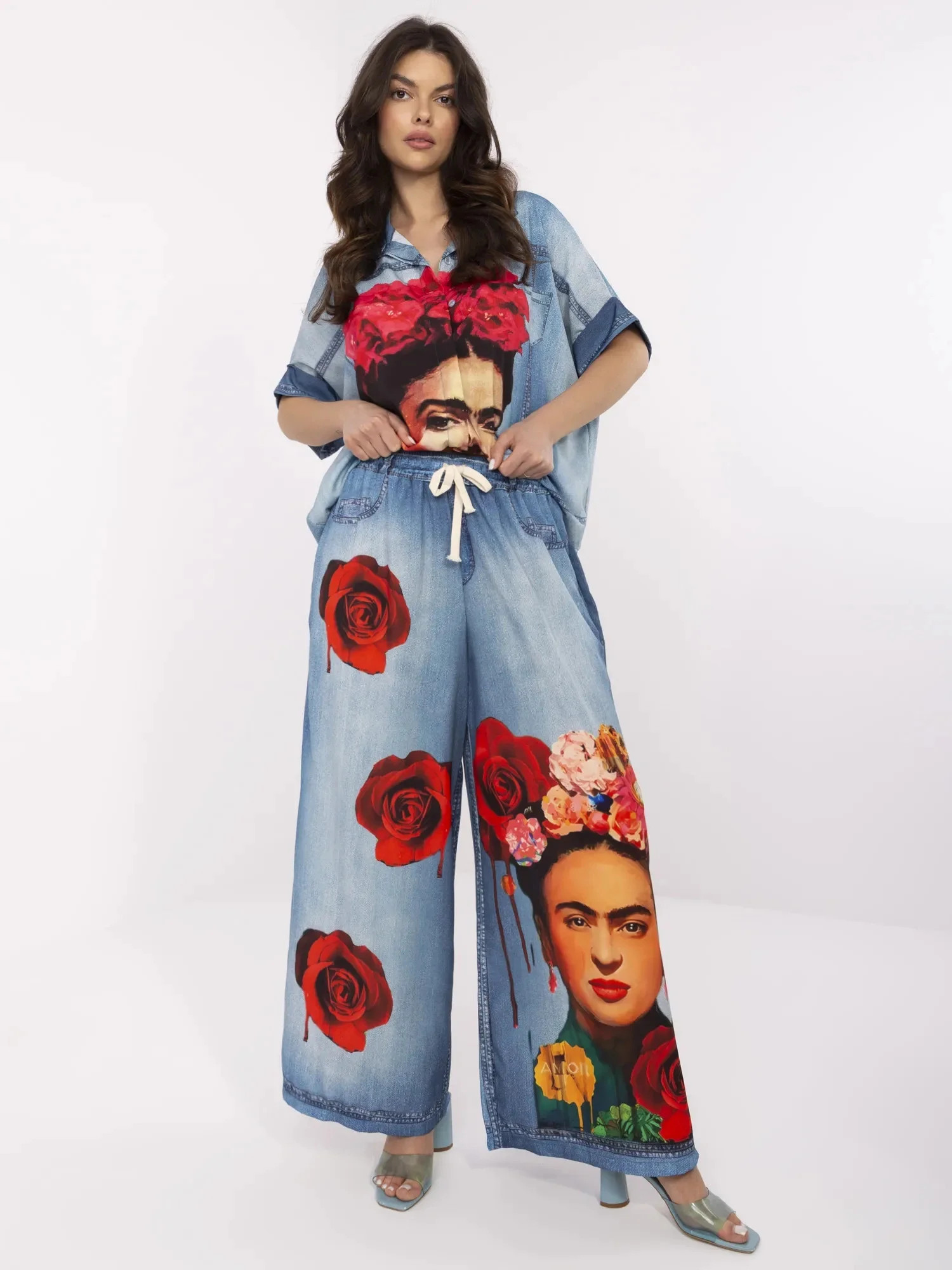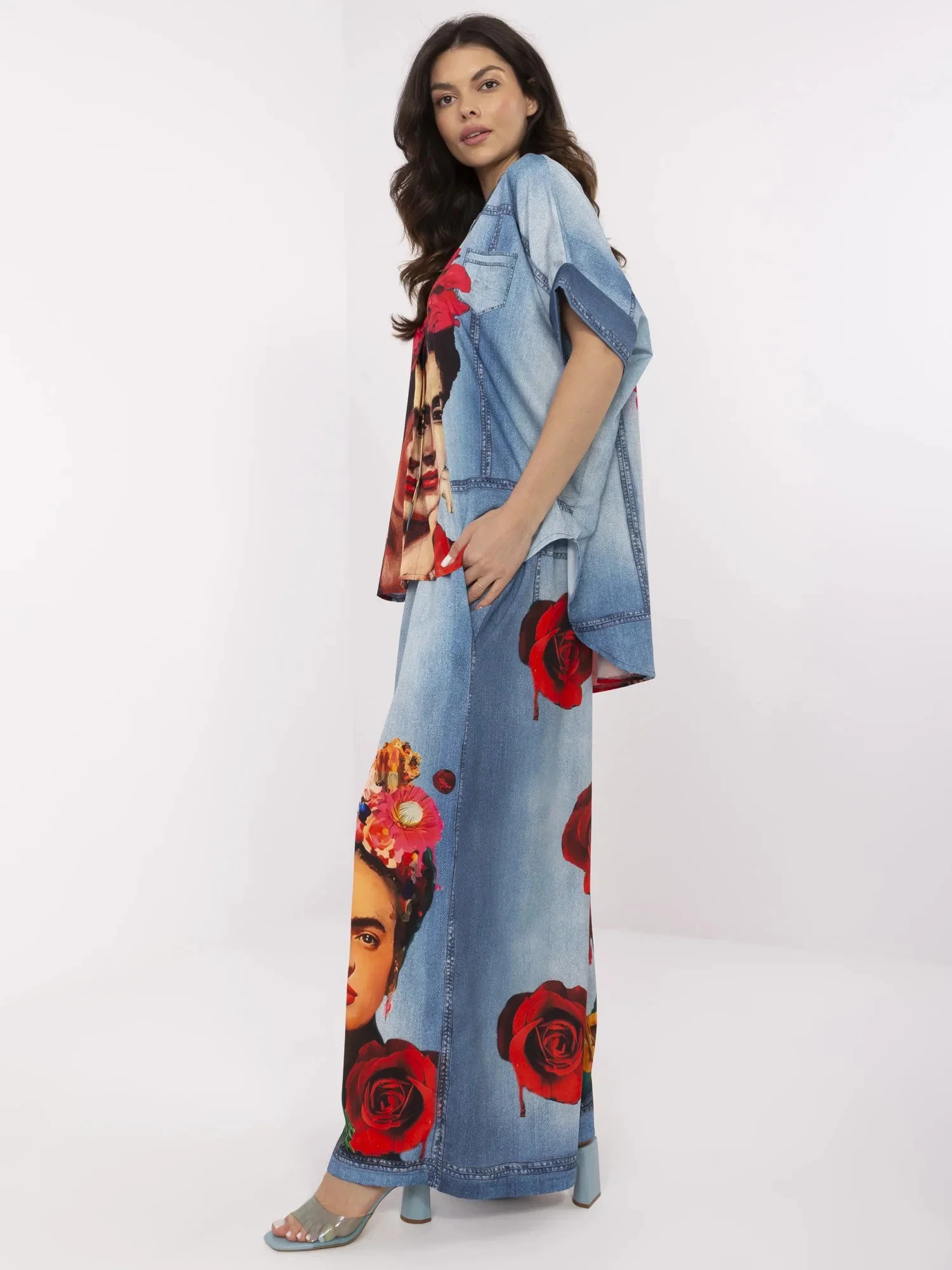 Modelka ma na sobie rozmiar one size. Wymiary modelki: wzrost 173 cm, biust 89 cm, talia 65 cm, biodra 91 cm.