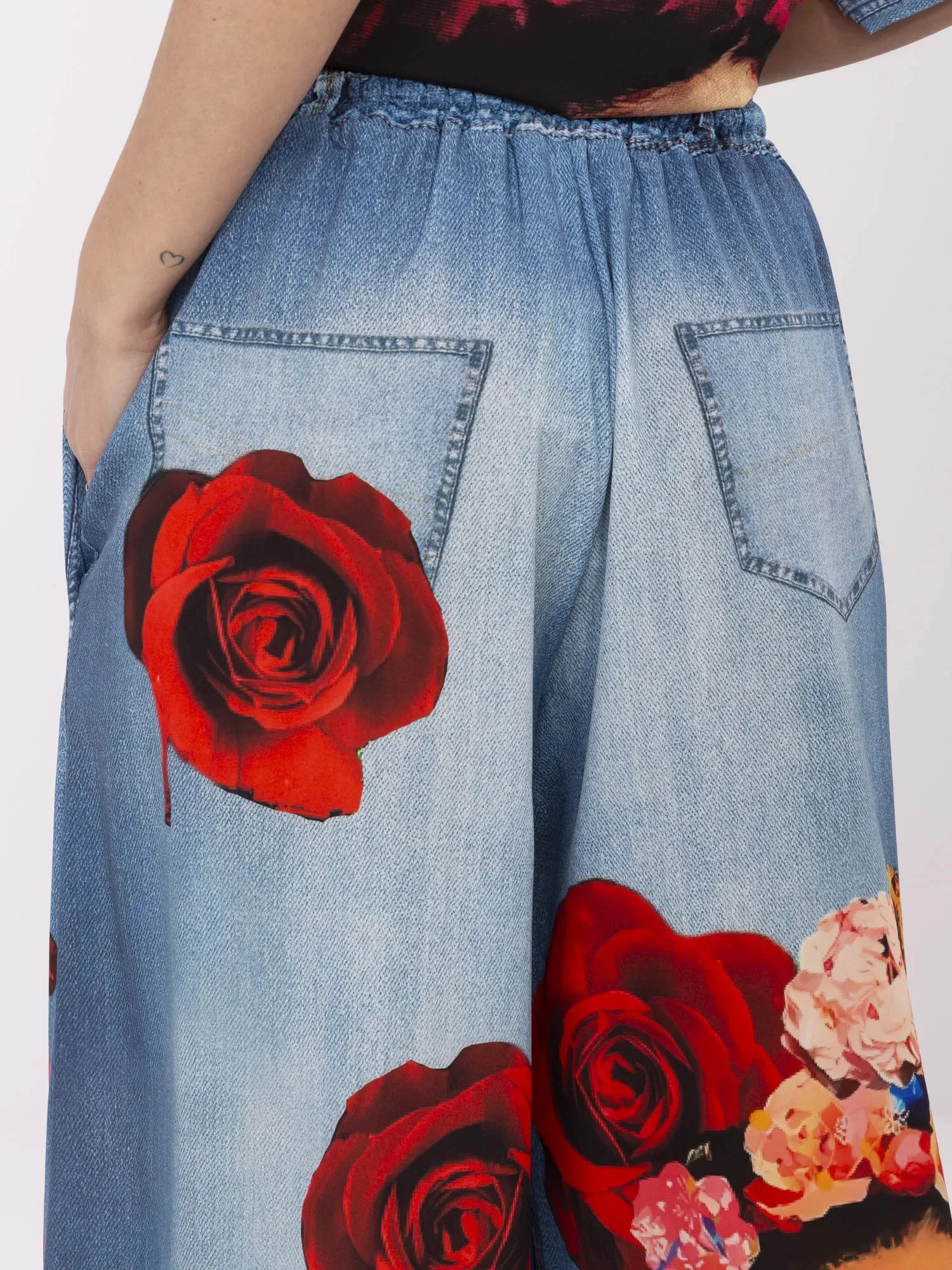 Wymiary spodni w rozmiarze one size mierzone na płasko: szerokość w pasie - 32 cm (na płasko), szerokość w pasie - 56 cm (po rozciągnięciu), wysokość stanu - 34 cm, długość całkowita - 101 cm.