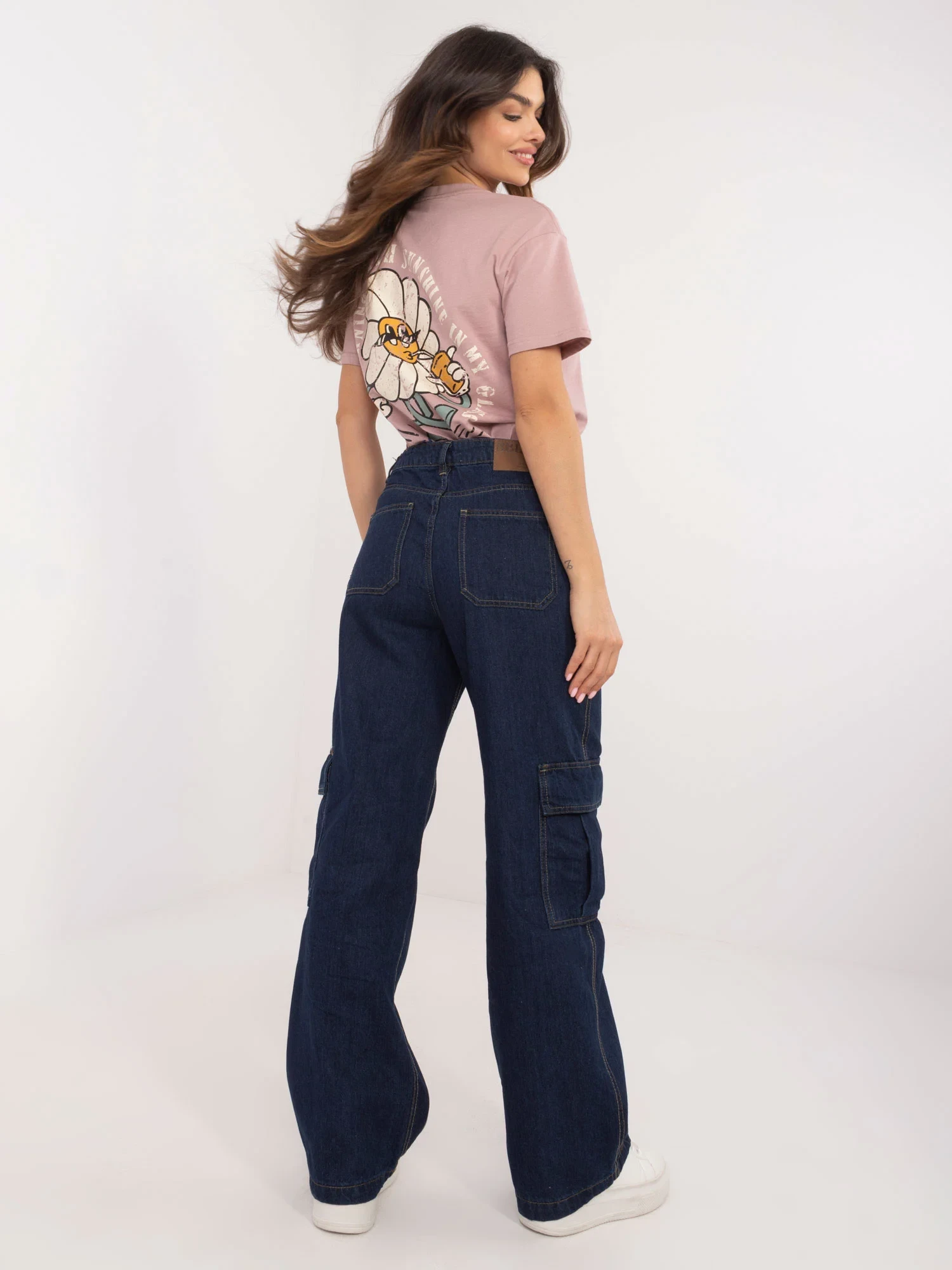 Wymiary spodni w rozmiarze S mierzone na płasko: szerokość w pasie - 38 cm, wysokość stanu - 29 cm, długość spodni - 106 cm.