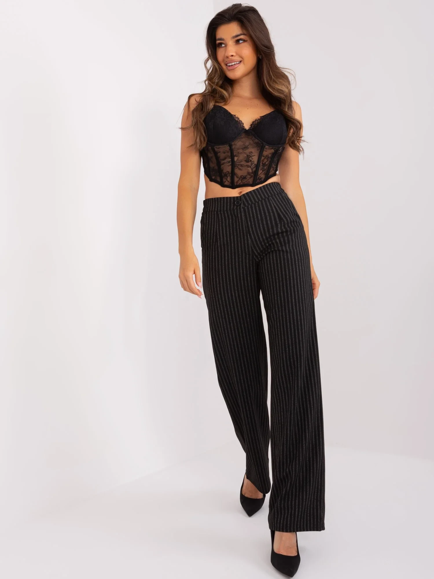 Modelka ma na sobie rozmiar 36. Wymiary modelki: wzrost 173 cm, biust 89 cm, talia 65 cm, biodra 91 cm.
