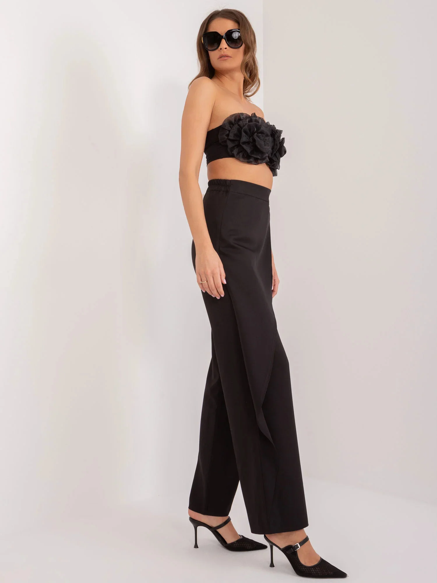 Modelka ma na sobie rozmiar 36. Wymiary modelki: wzrost 176 cm, biust 85 cm, talia 64 cm, biodra 92 cm.