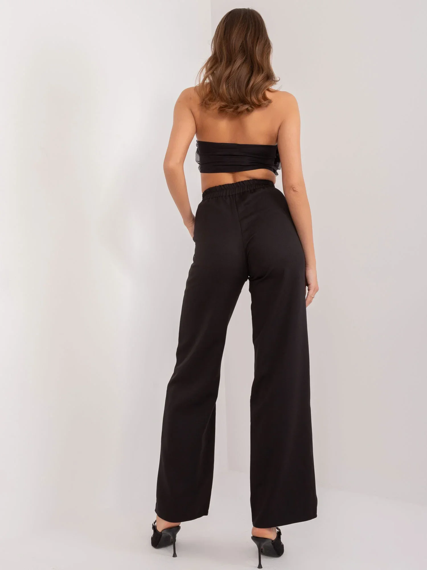 Wymiary spodni w rozmiarze 36 mierzone na płasko: szerokość w pasie - 35 cm, wysokość stanu - 28 cm, długość całkowita - 107 cm.