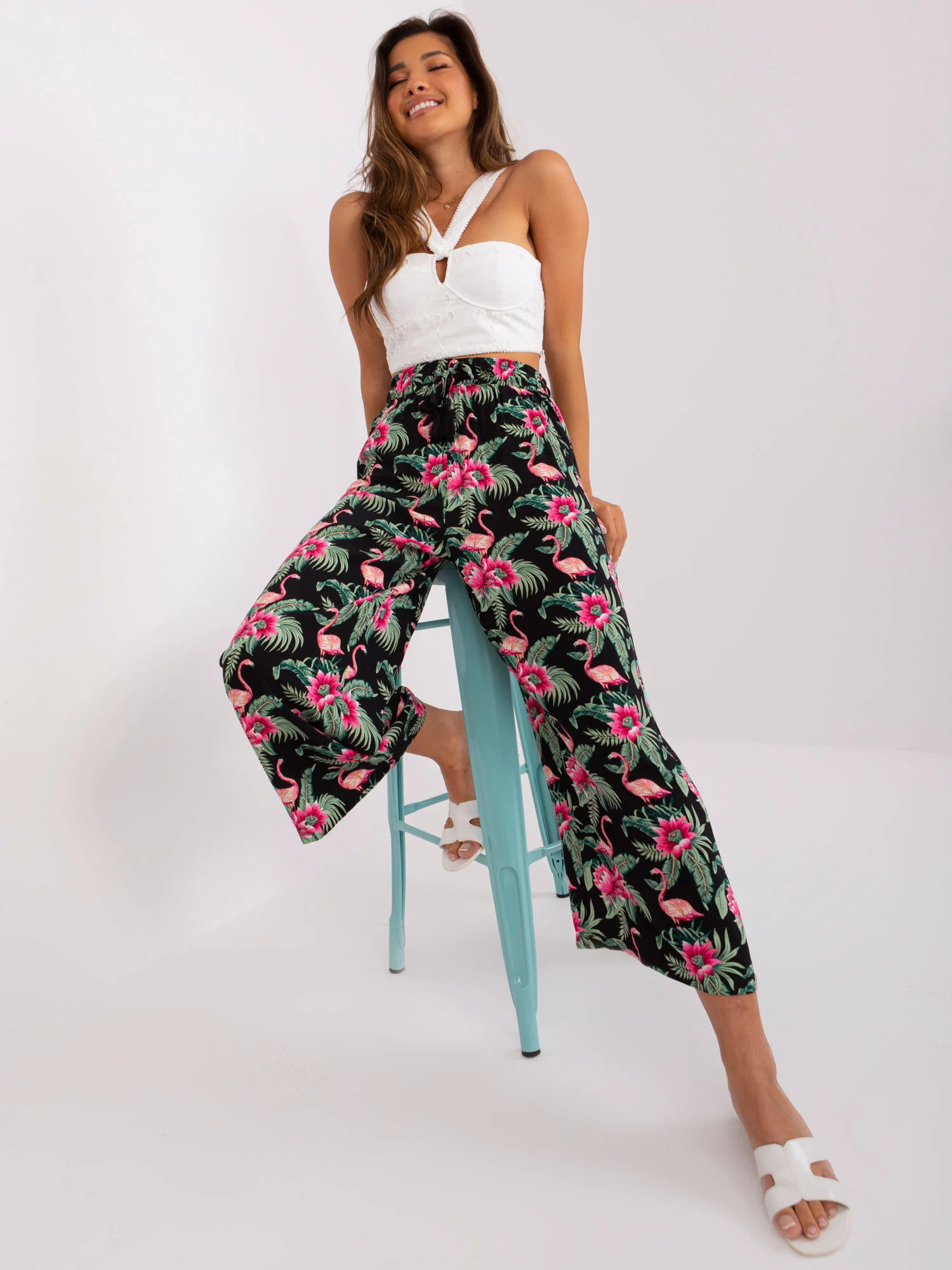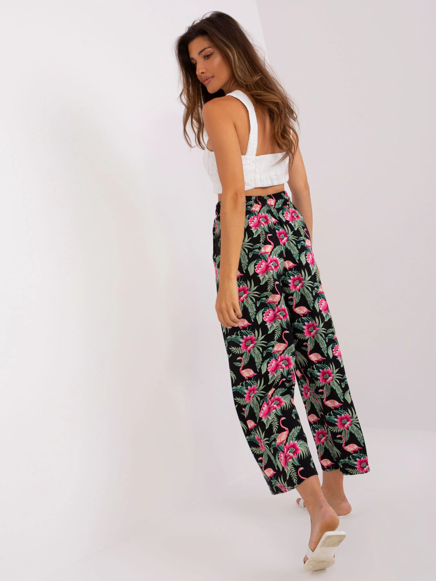 Wymiary spodni w rozmiarze S mierzone na płasko: szerokość w pasie - 36 cm, wysokość stanu - 35 cm, długość całkowita - 97 cm.