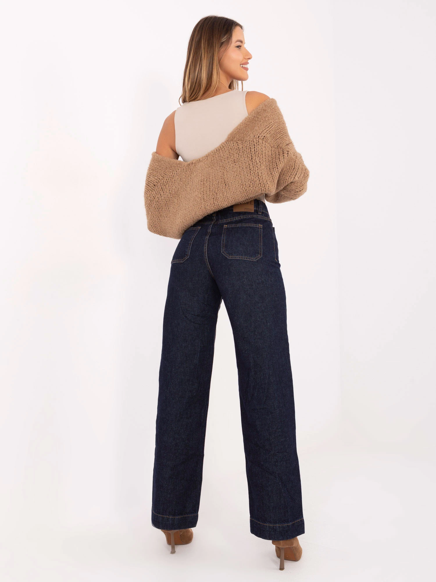 Wymiary spodni w rozmiarze XS mierzone na płasko: szerokość w pasie - 38 cm, wysokość stanu - 31 cm, szerokość w biodrach - 49 cm, długość całkowita - 114 cm.