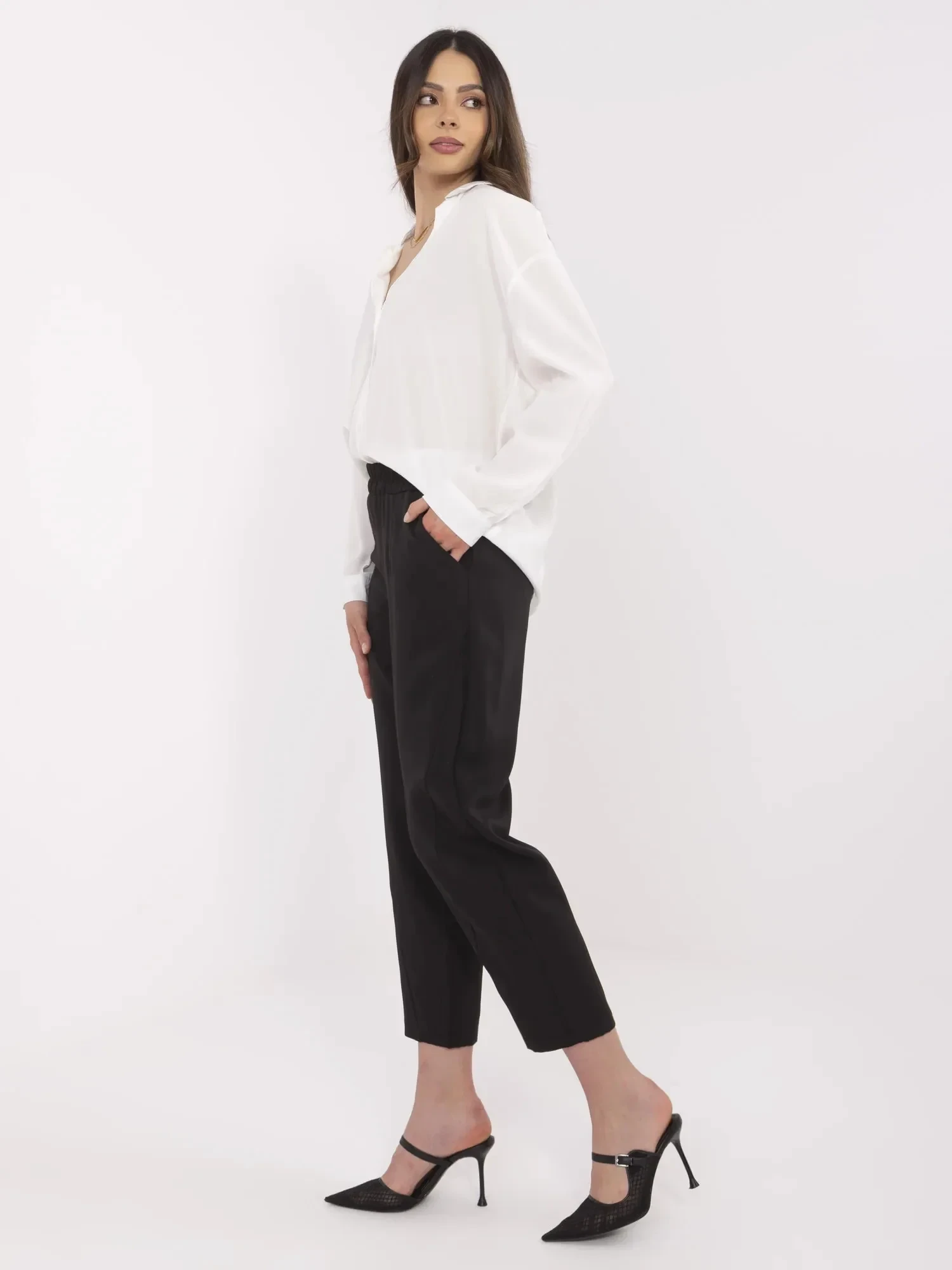 Modelka ma na sobie rozmiar S. Wymiary modelki: wzrost 175 cm, biust 90 cm, talia 66 cm, biodra 94 cm