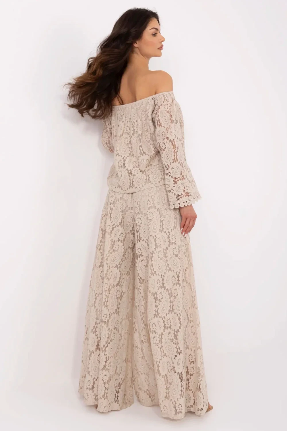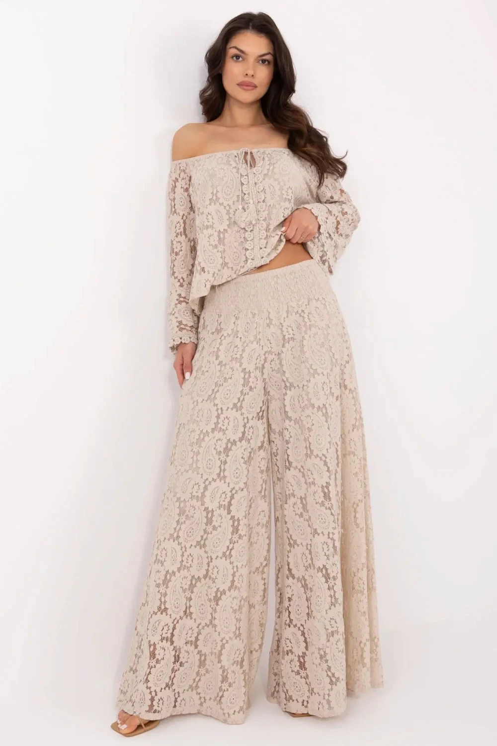 Elegantní, krajkové kalhoty palazzo jsou stylovým návrhem pro ženy, které ocení eleganci a pohodlí. Vyrobené z jemné ažurové krajky na podšívkové látky kombinují jemný šarm s pohodlím každodenního nošení. Materiál z bavlny a nylonu dělá kalhoty lehké, prodyšné a příjemné na dotek. Široké nohavice ve stylu palazzo se pěkně usazují při pohybu, dodávají postavě lehkost a moderní charakter. Bez zapínání zajišťuje pohodlné oblékání a hladké dokončení v pasu. Tento model se skvěle hodí na různé příležitosti, do práce, do každodenního života, ale i na večírky nebo elegantní výstupy. Stylová krajka a klasická délka vytvářejí wow efekt bez námahy, stačí přidat jednoduchý top nebo elegantní halenku.
