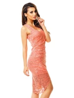 Společenské a plesové šaty MAYAADI krajkové s asymetrickou sukní lososové - Růžová / XL - MAYAADI