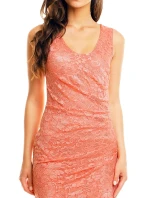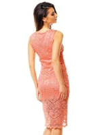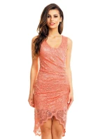 Společenské a plesové šaty MAYAADI krajkové s asymetrickou sukní lososové