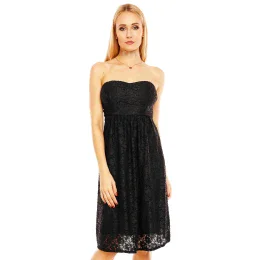 Společenské dámské šaty krajkové bez ramínek černé - Černá - MAYAADI
