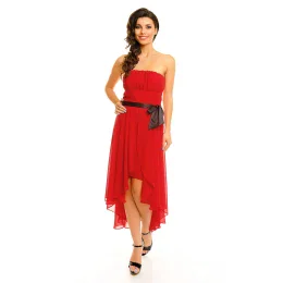 Společenské šaty korzetové MAYAADI s mašlí a asymetrickou sukní červené