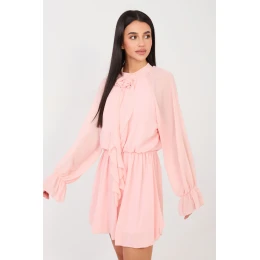 Tato rozkvetlá koktejlová šaty jsou návrhem pro ženy, které rády vypadají elegantně a s noblesou. Vyrobené z vysoké kvality směsi polyesteru, viskózy a elastanu, krásně padnou na postavě a zároveň poskytují pohodlí při nošení. Guma v pasu zdůrazňuje pas a zaručuje ideální přizpůsobení. Model s mini délkou a dlouhými rukávy okouzluje jemnými detaily, volány na rukávech přidávají lehkost a šifónový límec s ozdobnou růží vpředu přitahuje pozornost a zdůrazňuje výjimečný charakter šatů. Kulatý výstřih dodává celku eleganci a hladký vzor zase zajišťuje, že kreace vypadá elegantně a nadčasově. Šaty nemají zapínání, což je dělá neuvěřitelně pohodlnými při oblékání. Podšívka zajišťuje pohodlí a dokonalé urovnání materiálu. Jsou ideální volbou na večírek, oslavu nebo Silvestra, dodají vám grácii a sebejistotu v každé situaci.