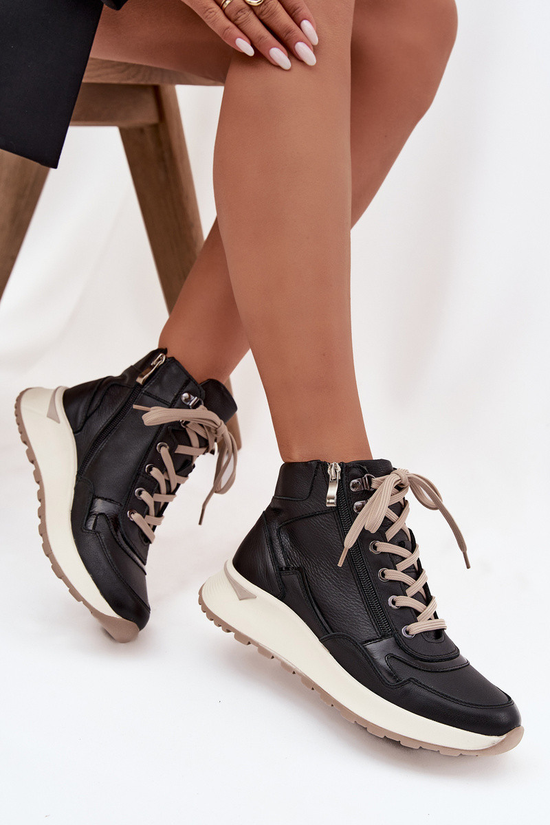 Sportovní dámské boty na platformě z přírodní kůže Zazoo Z1239 Černé