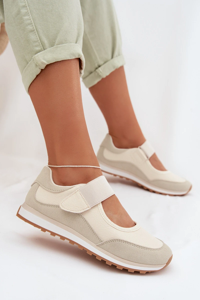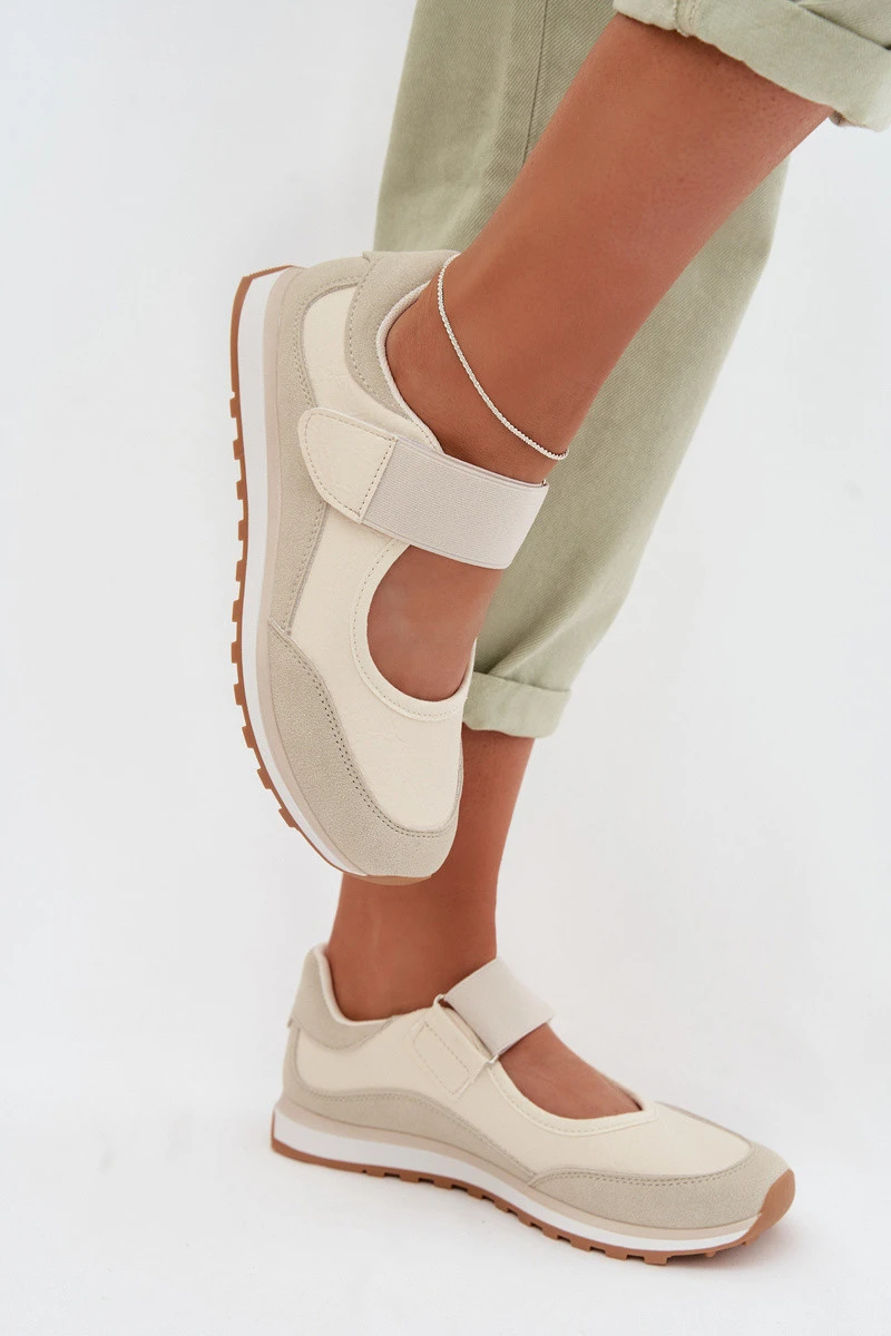 Sportovní dámské polobotky na suchý zip Béžové model 22026561 - EVENTO