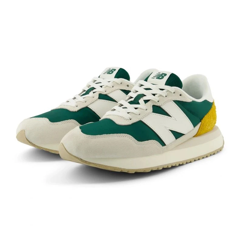Pánské tenisky z řady 237.Svršek je vyroben z prvků semišové kůže a syntetických materiálů.Na jazyku je umístěna nášivka s logem značky.Dobře odpružená mezipodešev z pěny EVA tlumí nárazy a poskytuje vysokou úroveň pohodlí.Podešev vybavená odolným gumovým vzorkem zajišťuje dobrou přilnavost k zemi.Pánské tenisky z řady 237 skvěle doplní klasické oblečení a sportovní doplňky.