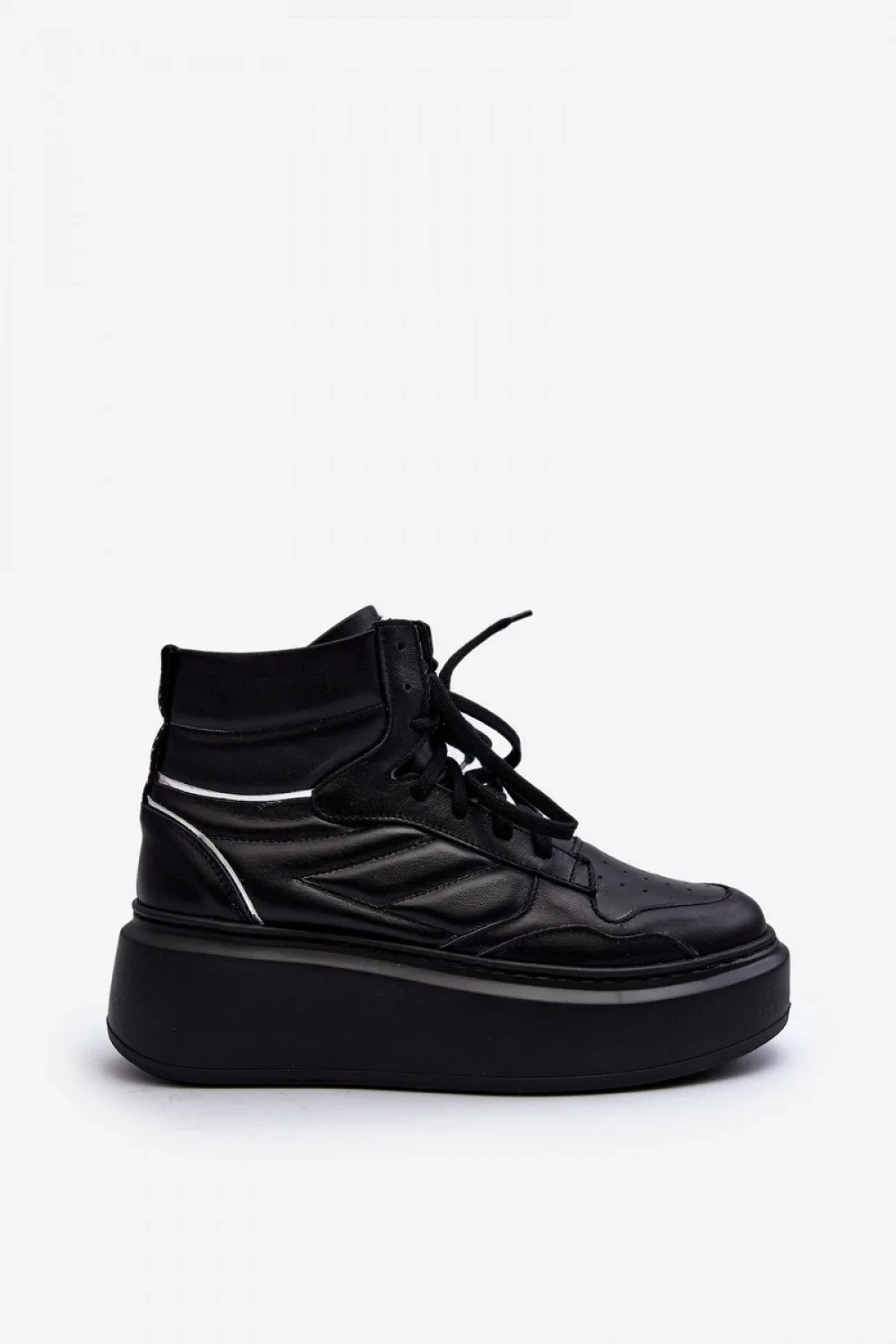 Módní dámská sportovní obuv z přírodní kůže. Stojí na masivní platformě. Svršek za kotníkem. Zaoblená špička. Model s klasickým šněrováním. Ideální pro jarní dny! Tento střih vás jistě potěší!