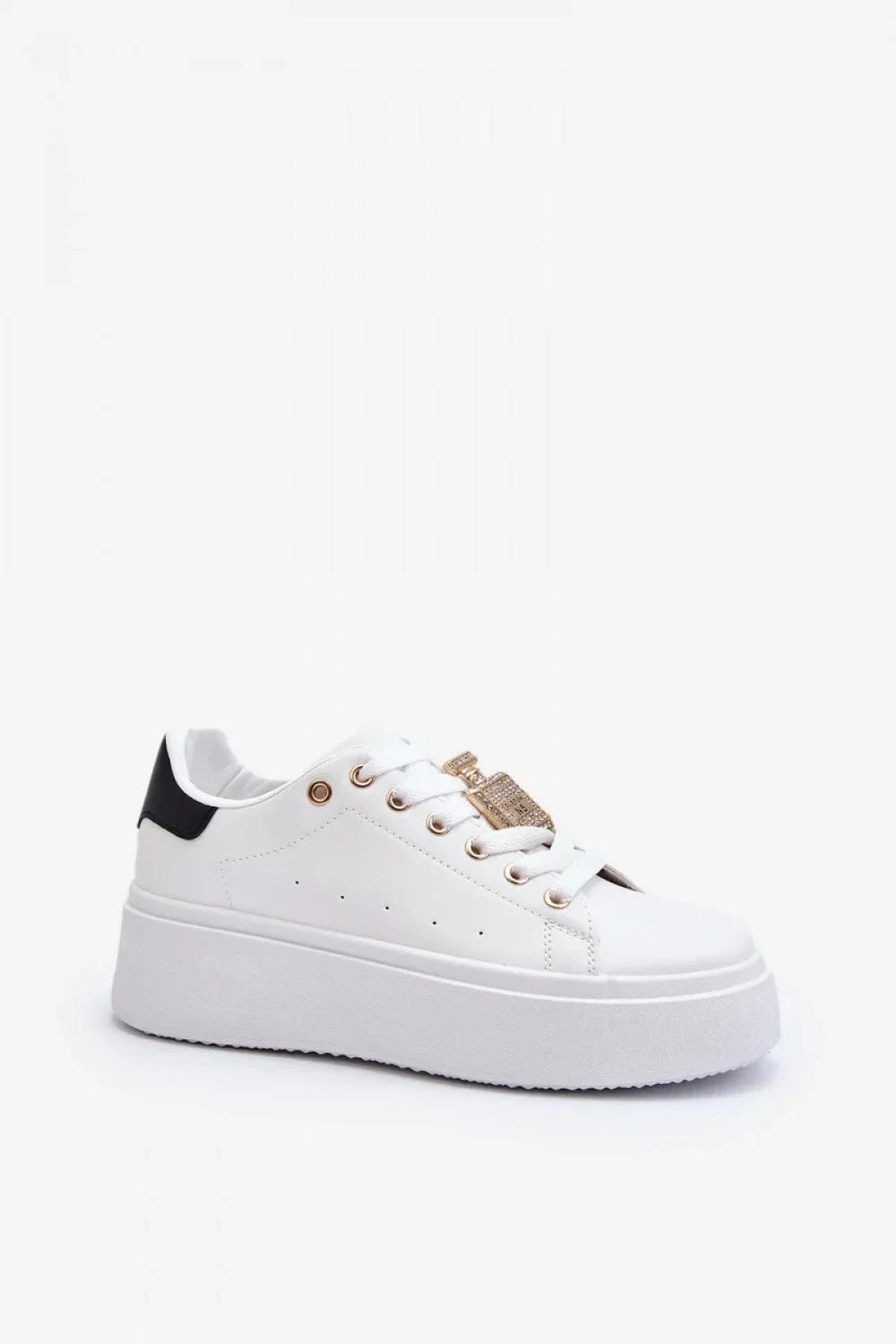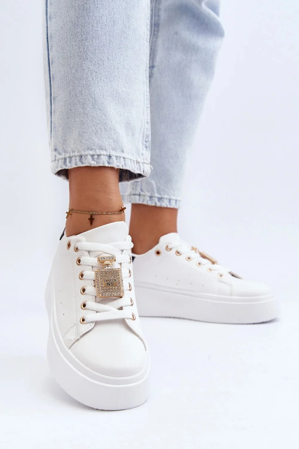 Dámská sportovní obuv byla vyrobena z ekologické kůže. Stojí na platformě. Tento model je klasicky šněrovací. Budou ideální jako každodenní obuv, do práce nebo do školy. O vaše pohodlí se postará pěnová stélka. Na tkaničkách ozdoba v podobě parfému. Tento model by neměl chybět ve vašem šatníku!