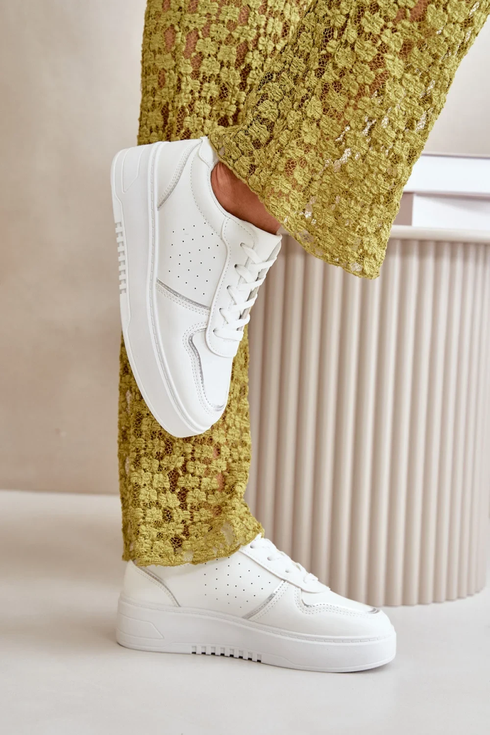 Dámské tenisky vyrobené z ekokůže. Osazené na platformě, která jim dodává moderní charakter a zajišťuje pohodlí. Boty se vyznačují dodatečným ozdobným šněrováním, které jim dodává originalitu a styl. Ideální pro každodenní outfit.